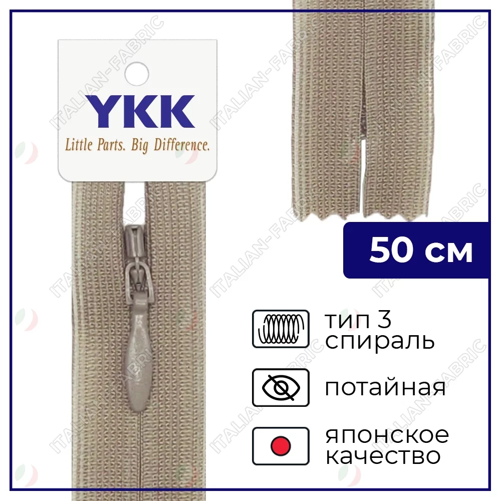 Молния YKK потайная неразъёмная, 50см, 3мм, цвет 810, серо-бежевый
