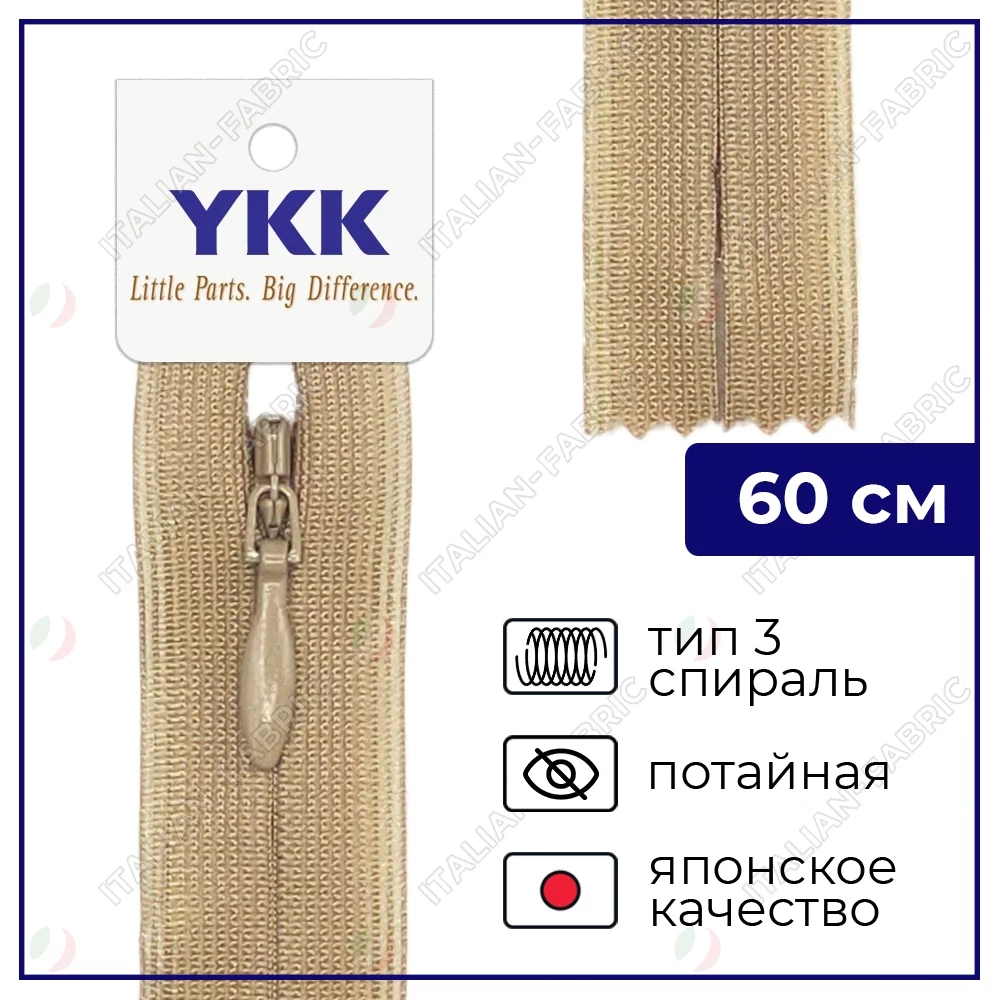 Молния YKK потайная неразъёмная, 60см, 3мм, цвет 007, темно-бежевый