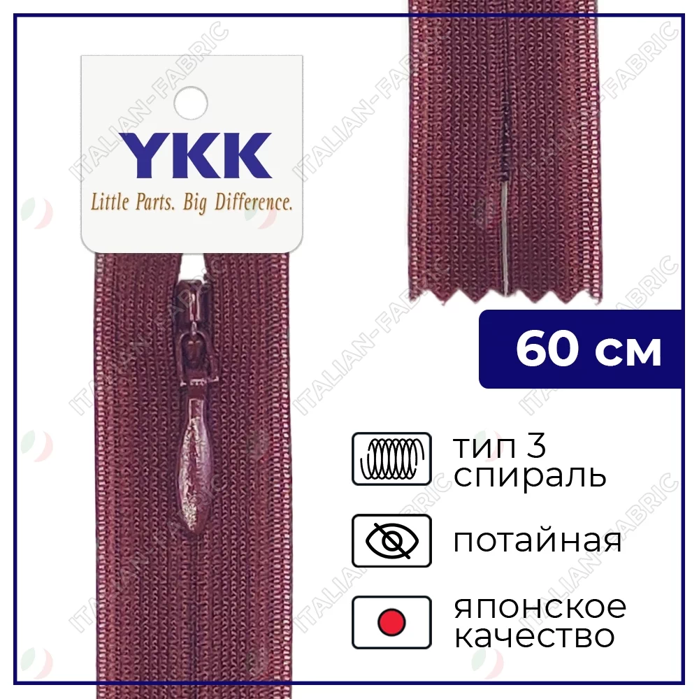 Молния YKK потайная неразъёмная, 60см, 3мм, цвет 021, винный