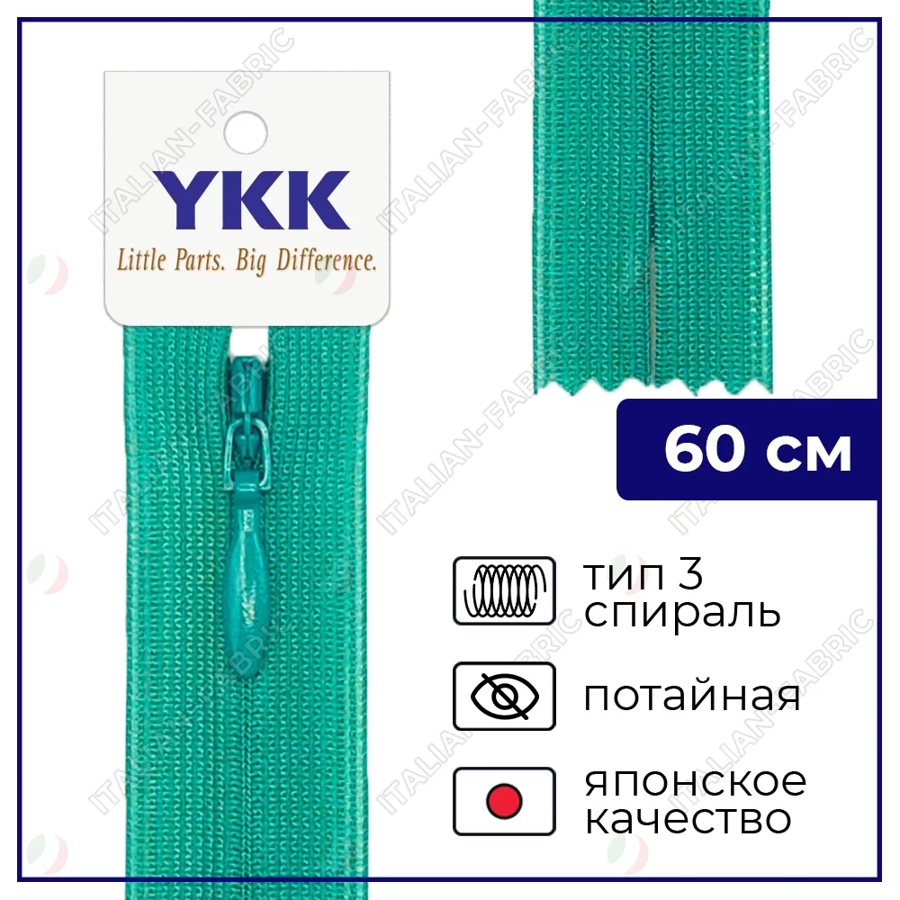 Молния YKK потайная неразъёмная, 60см, 3мм, цвет 539, опаловый зеленый