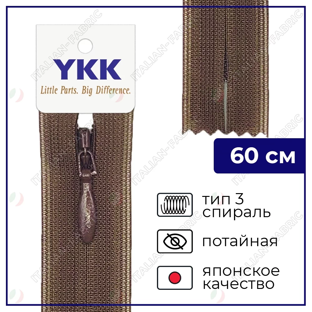 Молния YKK потайная неразъёмная, 60см, 3мм, цвет 568, мокко
