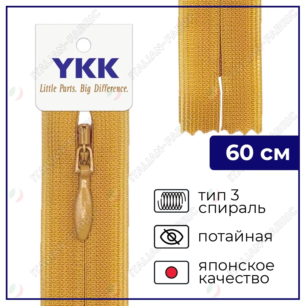 Молния YKK потайная неразъёмная, 60см, 3мм, цвет 848, светлая охра