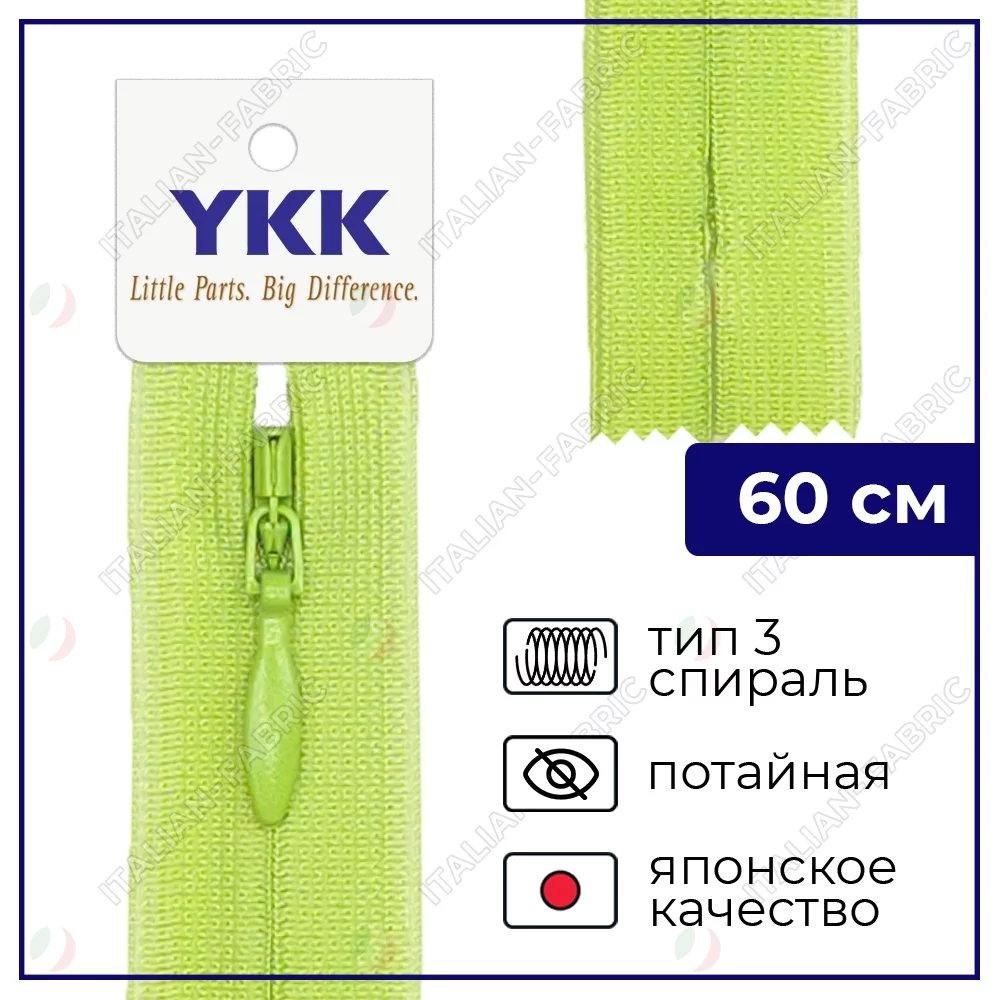 Молния YKK потайная неразъёмная, 60см, 3мм, цвет 874, салатовый