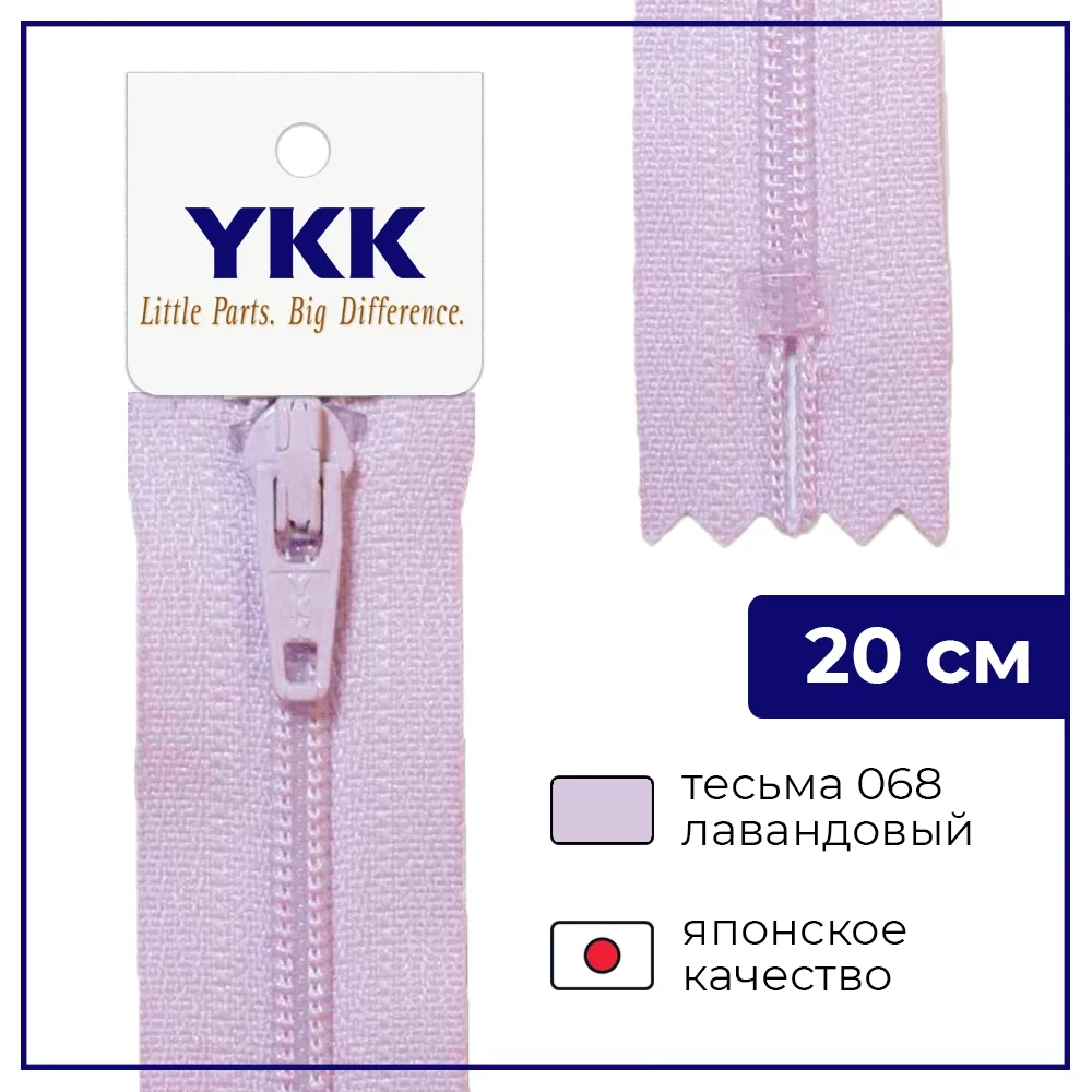 Молния YKK спираль неразъёмная, 20см, 3мм, цвет 068, лавандовый