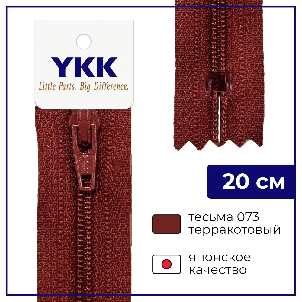 Молния YKK спираль неразъёмная, 20см, 3мм, цвет 073, терракотовый