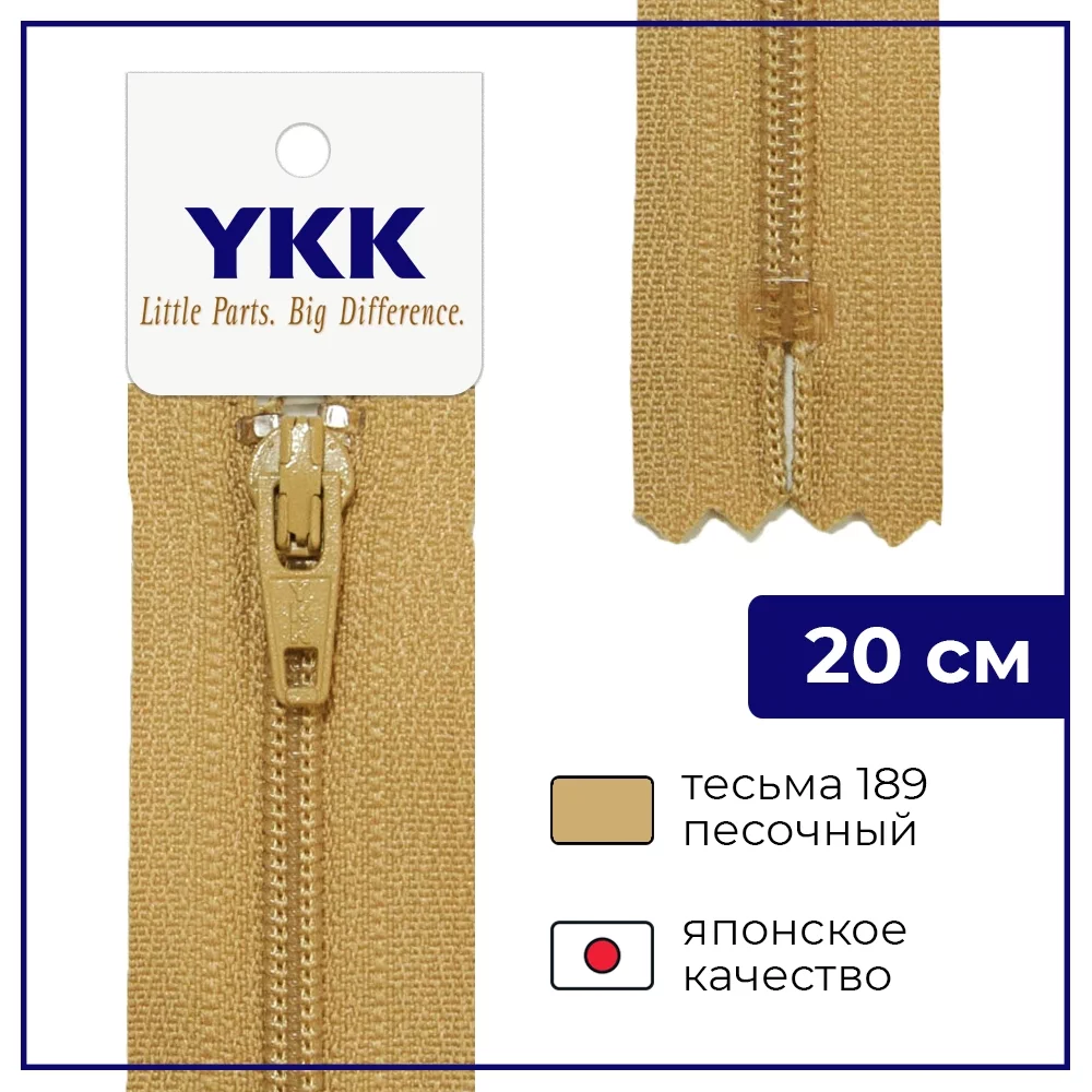 Молния YKK спираль неразъёмная, 20см, 3мм, цвет 189, песочный