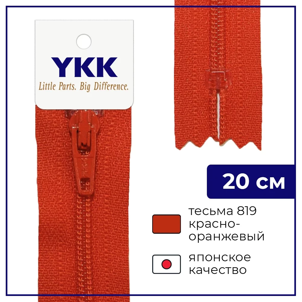 Молния YKK спираль неразъёмная, 20см, 3мм, цвет 819, красно-оранжевый