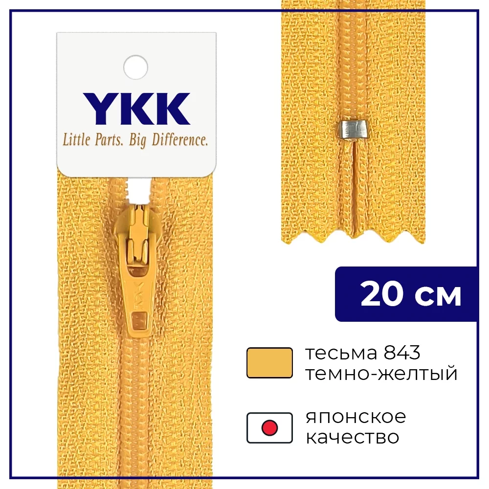 Молния YKK спираль неразъёмная, 20см, 3мм, цвет 843, темно-желтый