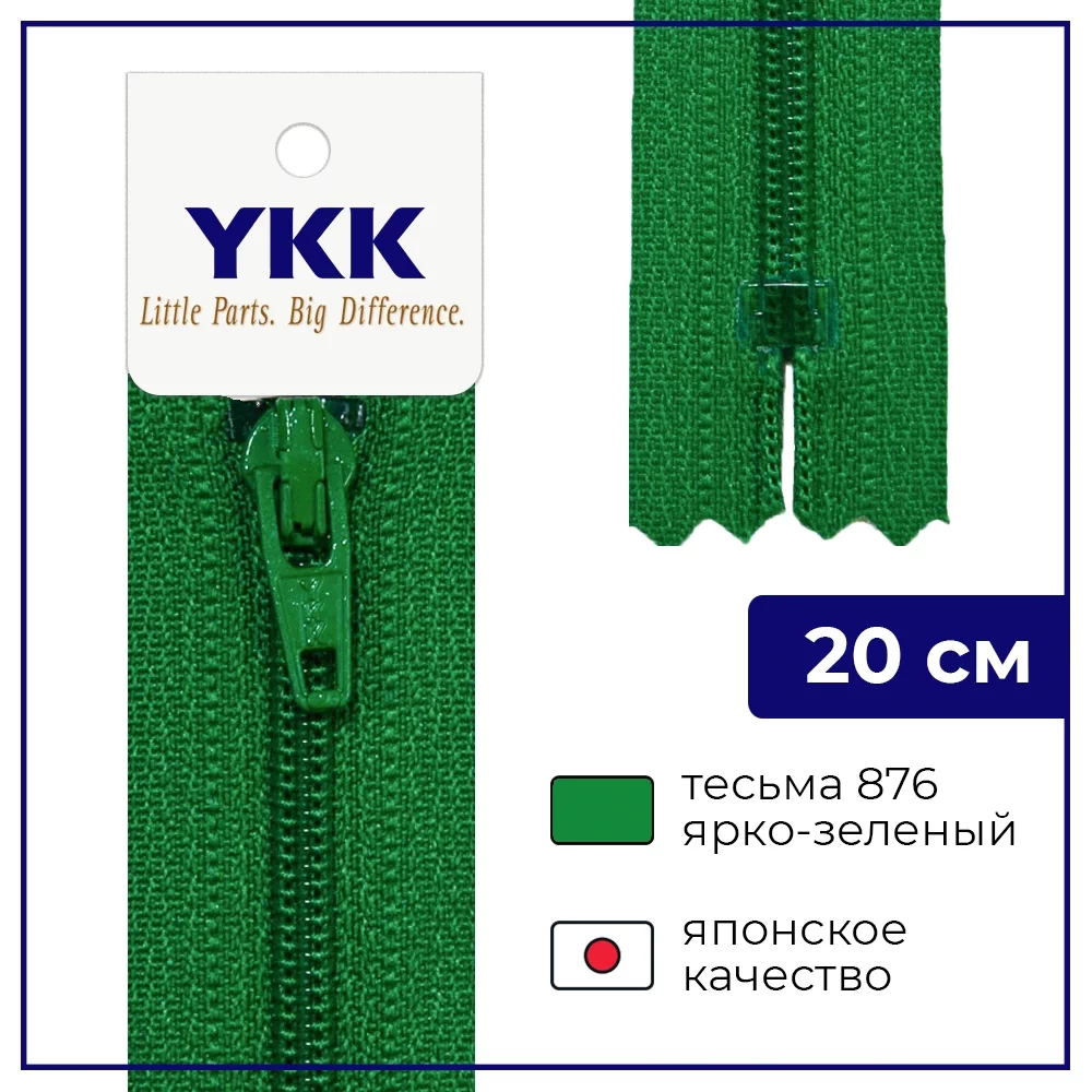 Молния YKK спираль неразъёмная, 20см, 3мм, цвет 876, ярко-зеленый