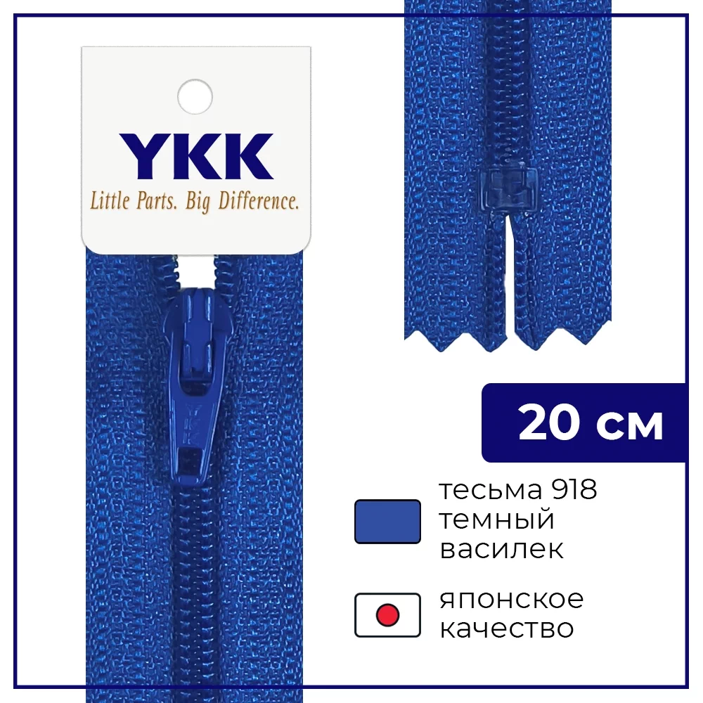 Молния YKK спираль неразъёмная, 20см, 3мм, цвет 918, темный василек