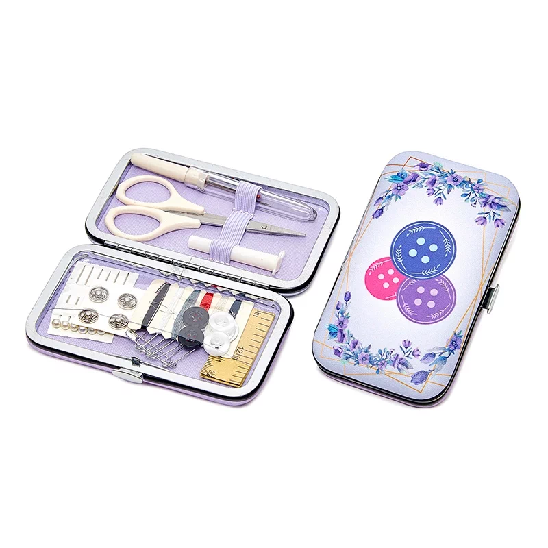 Швейный набор в футляре из искусственной кожи. Размер изделия - 10,8*6,5*2 см. Отлично подходит для путешествий и повседневного использования.