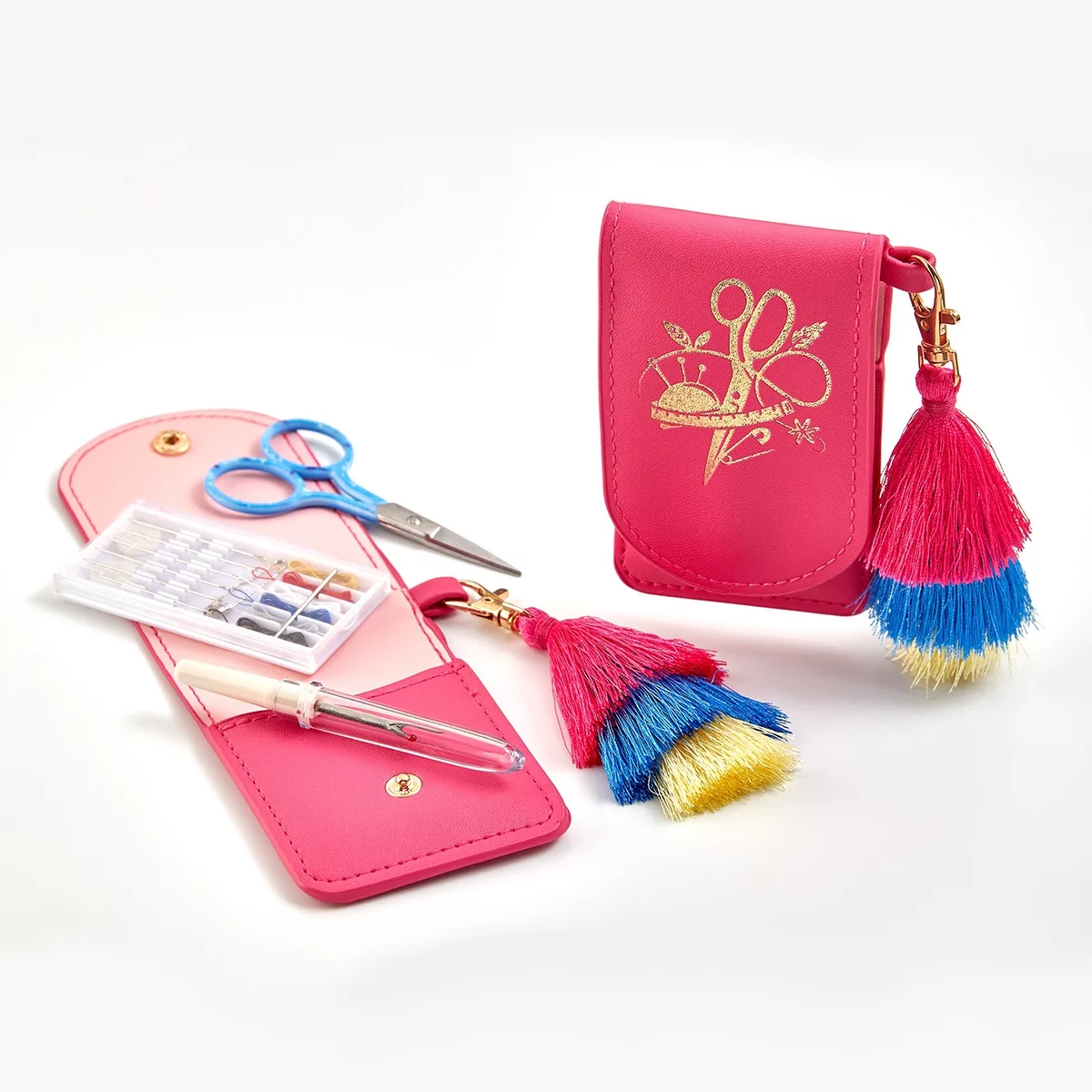 Швейный набор в стильном кошельке с кисточкой. Стильная кисточка в тон расцветки кошелька.