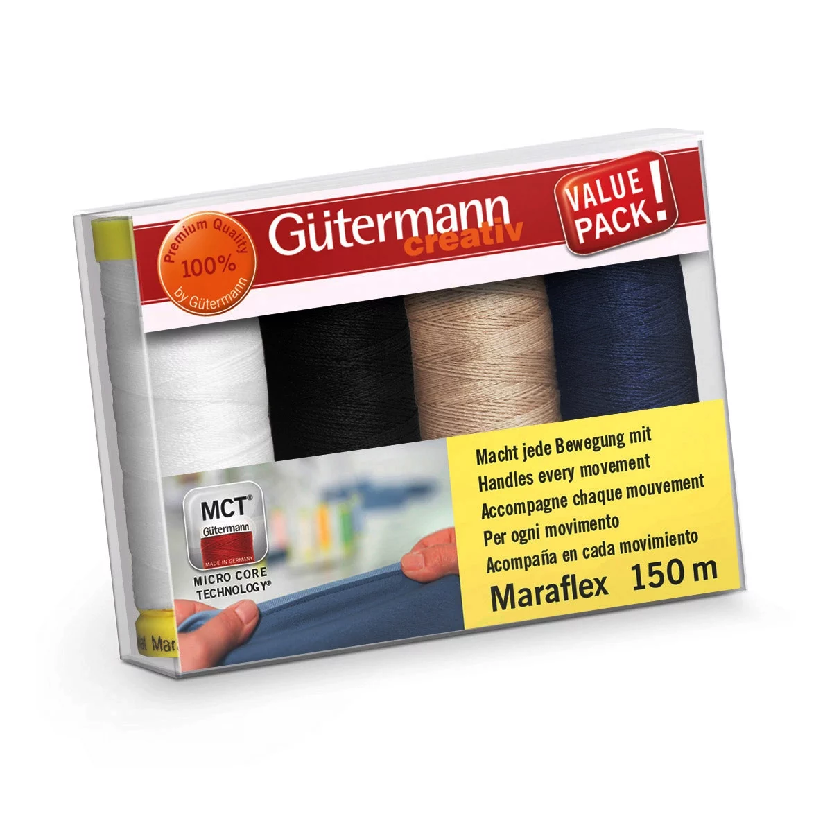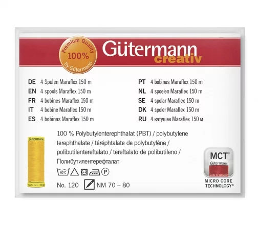 Gutermann Maraflex – подходит для очень эластичной тонкой ткани и трикотажных изделий. Прекрасный выбор для декоративных стежков. Используйте нить Maraflex для шитья мужской, женской, спортивной одежды, а также нижнего белья. Благодаря низким значениям натяжения нити можно придать шву идеальную эластичность уже при 4 стежках на см. Эластичность шва сохранится, даже если выбрать челночный стежок вместо двойного цепного.