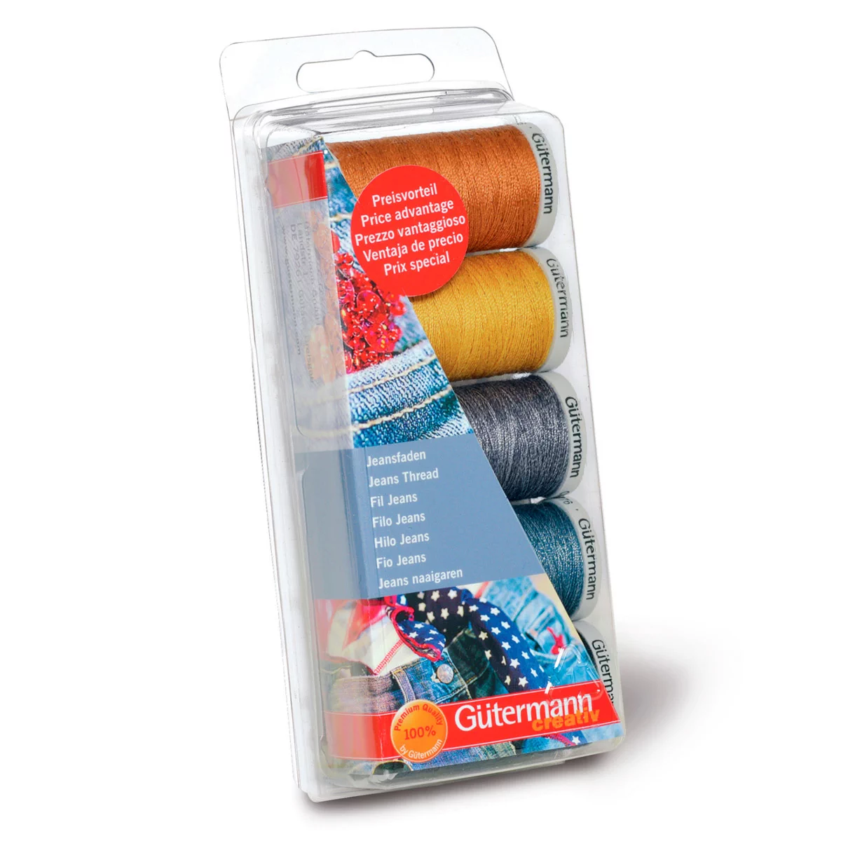 Набор нитей джинс Gutermann (3кат. супер крепкие, 2кат. джинсовые), 731323-col.1