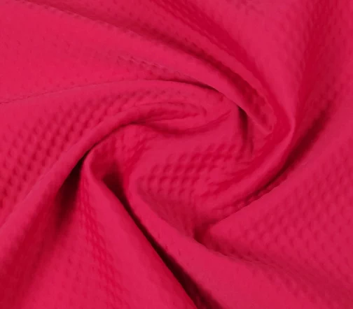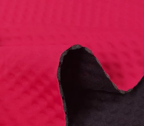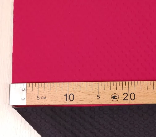 Неопрен фактурный с прослойкой поролона. Гибкий, упругий, хорошо восстанавливает форму, пластичный и довольно прочный. Цвет малиновый.