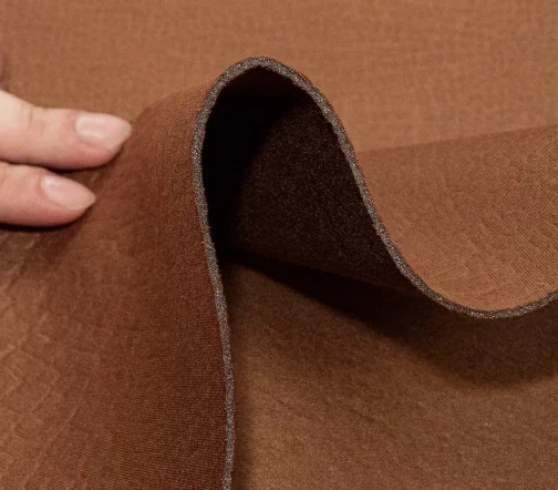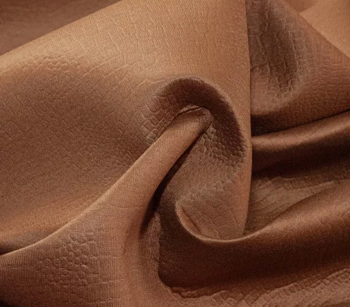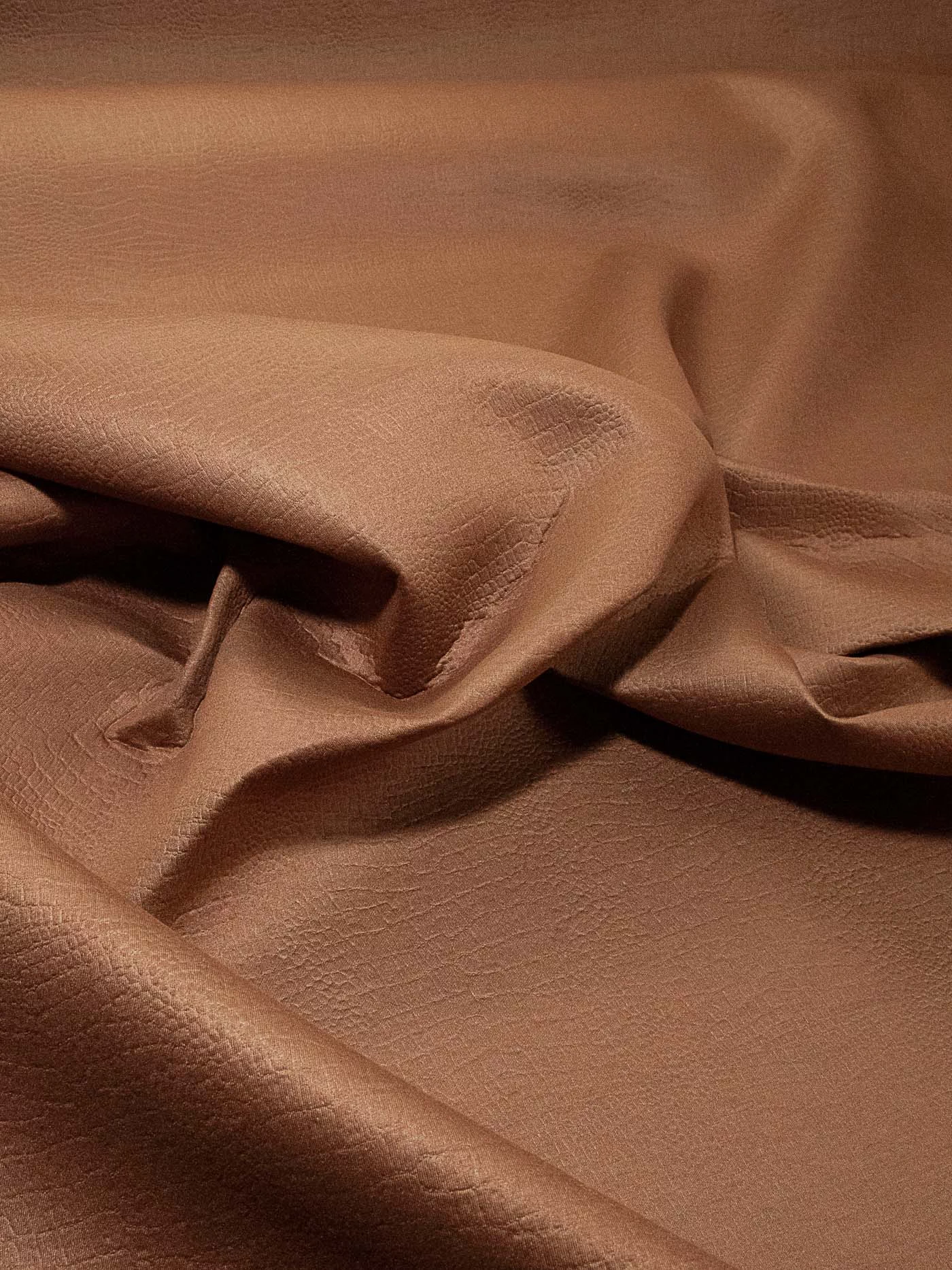 Держит форму, состоит из 3-х слоев (верхний слой с тиснением, прослойка - поролон, нижний слой - однотонный). На верхнем слое тиснение под кожу. Для пошива стильных жакетов, курток, платья, с элементами, держащими форму.