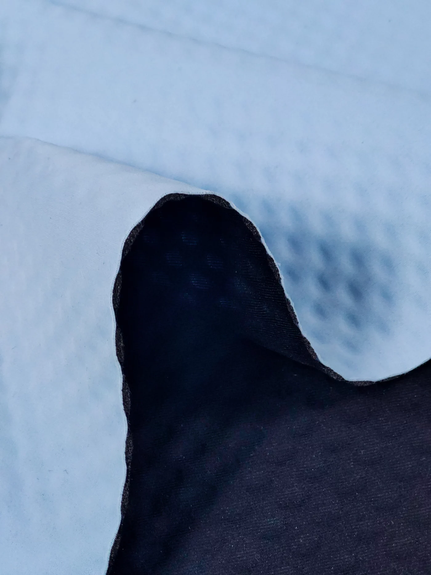 Средней плотности неопрен, форму не держит, пластичный, с красивым объемным стилизованным растительным узором, выполненным методом тиснения (выдавливания).