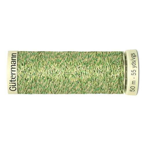 Нитки Gütermann с металлическим эффектом – прекрасный выбор для тех, кто любит шить, вышивать, заниматься рукоделием. Благодаря современным технологиям производства нитки прочные, не теряют цвет, равномерные по всей длине, что обеспечивает аккуратные и качественные стежки. Нитки разработаны для тех, кто ценит мерцающий блеск на вышивке и декоративных швах. Тщательно подобранная цветовая палитра понравится даже взыскательным мастерицам. Применение: для тонких фасонных и декоративных швов; для творчества, придает сверкание и блеск изделию; в качестве основной и нижней нити. Толщина: No. 90. Рекомендуемая игла: универсальная NМ 100-110. Состав: полиамид - 70%, полиэстер - 30%.