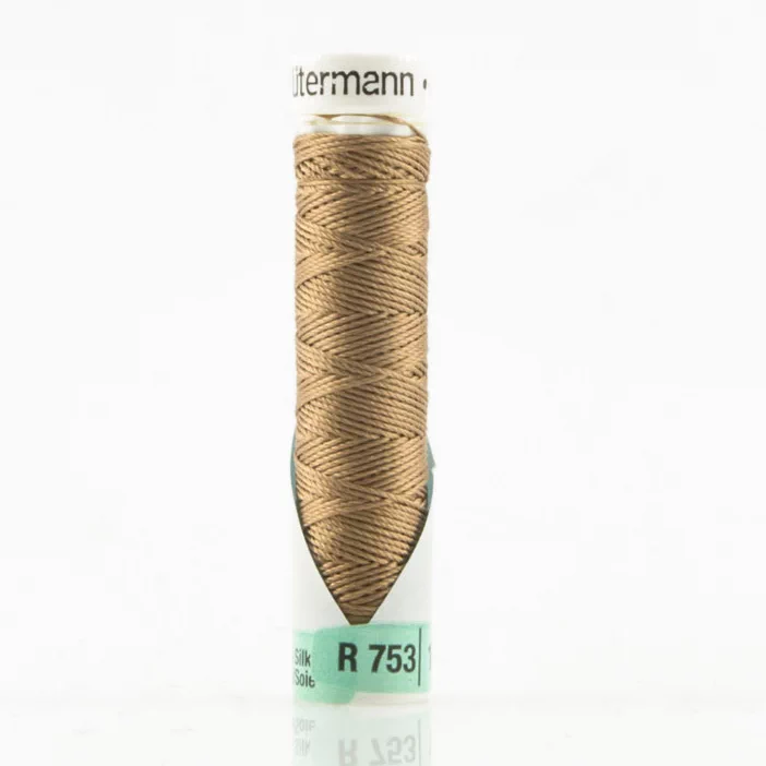 Gütermann R753 – нить премиального качества из 100% шелка. Нитки понравятся тем, кто ценит натуральные материалы, аккуратные строчки и шелковистый блеск. Подходят для разных видов швов: соединительных, фасонных и стегальных. Подходит для 'глазных' петель. Благодаря современным технологиям производства шелковая нить Gütermann R753 сохраняет цвет после многочисленных стирок, не выцветает на солнце. Вещи, сшитые нитками Gutermann R753, выглядят дорого, стильно и долго прослужат своим владельцам. Рекомендуемый размер универсальной иглы №100-120; толщина нити № 40.