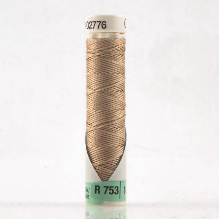 Gütermann R753 – нить премиального качества из 100% шелка. Нитки понравятся тем, кто ценит натуральные материалы, аккуратные строчки и шелковистый блеск. Подходят для разных видов швов: соединительных, фасонных и стегальных. Подходит для 'глазных' петель. Благодаря современным технологиям производства шелковая нить Gütermann R753 сохраняет цвет после многочисленных стирок, не выцветает на солнце. Вещи, сшитые нитками Gutermann R753, выглядят дорого, стильно и долго прослужат своим владельцам. Рекомендуемый размер универсальной иглы №100-120; толщина нити № 40.