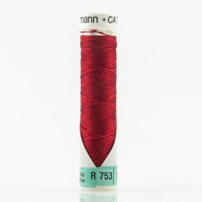 Нить Silk R 753 для фасонных швов, 10м, 100% шелк, цвет 367 т.красный, Gutermann 703184