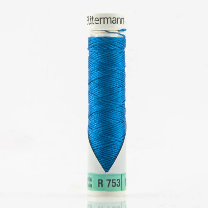 Нить Silk R 753 для фасонных швов, 10м, 100% шелк, цвет 386 королевский синий, Gutermann 703184