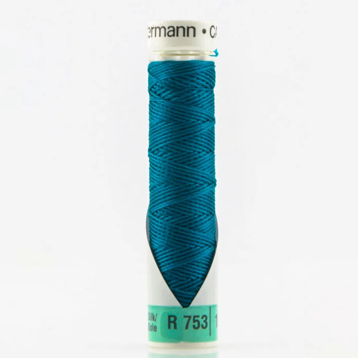 Нить Silk R 753 для фасонных швов, 10м, 100% шелк, цвет 483 морская волна, Gutermann 703184