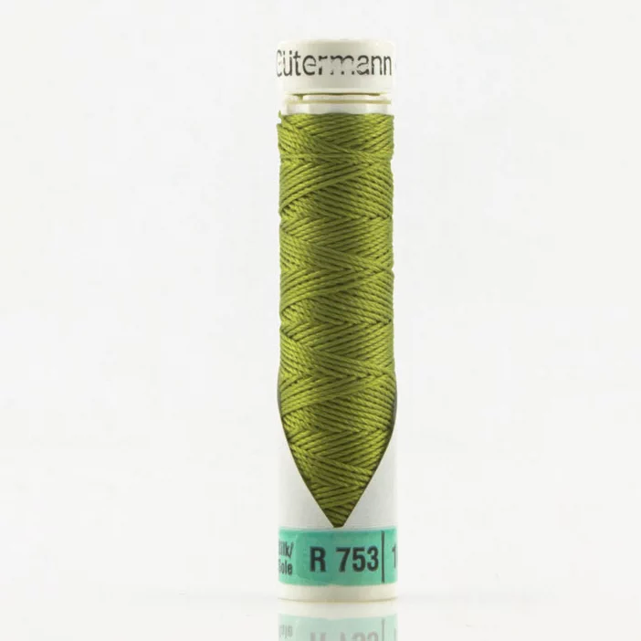 Нить Silk R 753 для фасонных швов, 10м, 100% шелк, цвет 582 зеленая горчица, Gutermann 703184