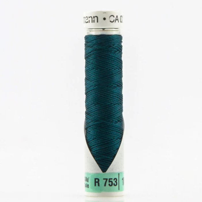 Нить Silk R 753 для фасонных швов, 10м, 100% шелк, цвет 764 т.зеленое стекло, Gutermann 703184