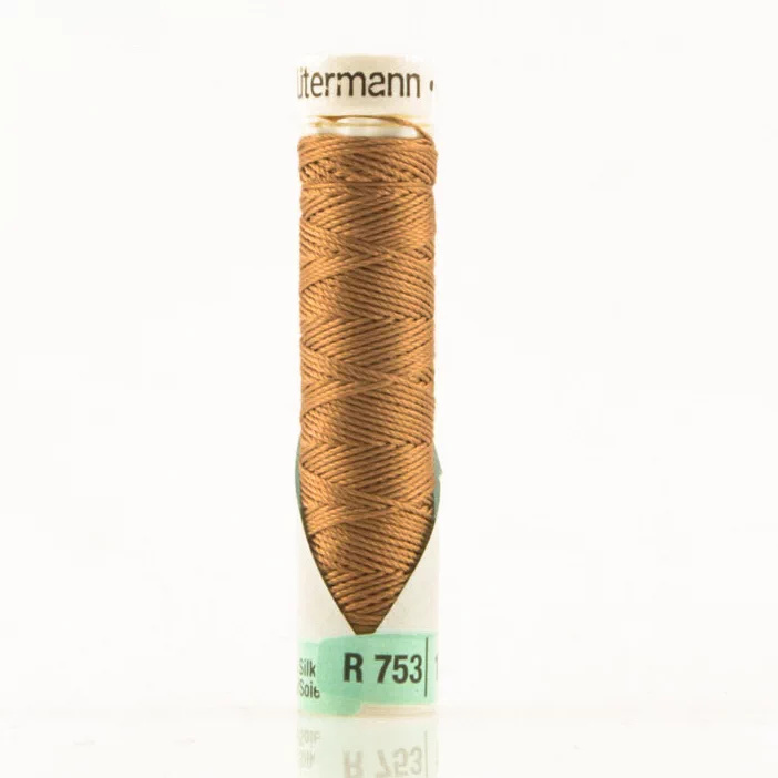 Нить Silk R 753 для фасонных швов, 10м, 100% шелк, цвет 887 бежево-горчичный, Gutermann 703184