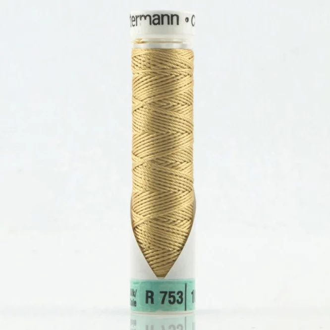 Нить Silk R 753 для фасонных швов, 10м, 100% шелк, цвет 893 бежево-желтый, Gutermann 703184