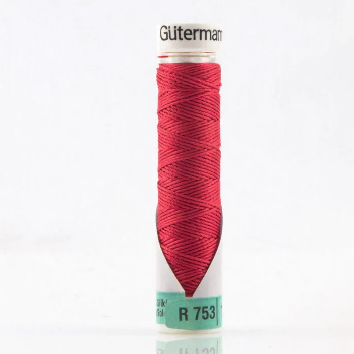 Gütermann R753 – нить премиального качества из 100% шелка. Нитки понравятся тем, кто ценит натуральные материалы, аккуратные строчки и шелковистый блеск. Подходят для разных видов швов: соединительных, фасонных и стегальных. Подходит для 'глазных' петель. Благодаря современным технологиям производства шелковая нить Gütermann R753 сохраняет цвет после многочисленных стирок, не выцветает на солнце. Вещи, сшитые нитками Gutermann R753, выглядят дорого, стильно и долго прослужат своим владельцам. Рекомендуемый размер универсальной иглы №100-120; толщина нити № 40.