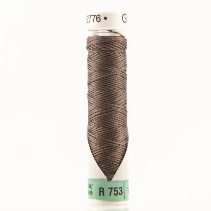 Нить Silk R 753 для фасонных швов, 10м, 100% шелк, цвет 969 серо-коричневый, Gutermann 703184