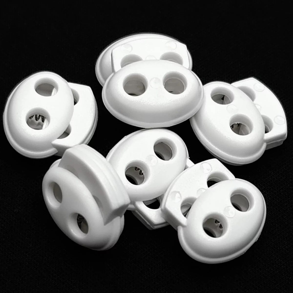 Фиксатор-ограничитель с двумя отверстиями, изготовленные из пластика, помогут надежно и красиво зафиксировать шнур/шляпную резинку на одежде, сумке, обуви.