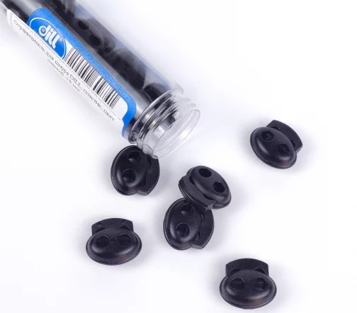 Фиксатор-ограничитель с двумя отверстиями, изготовленные из пластика, помогут надежно и красиво зафиксировать шнур/шляпную резинку на одежде, сумке, обуви.