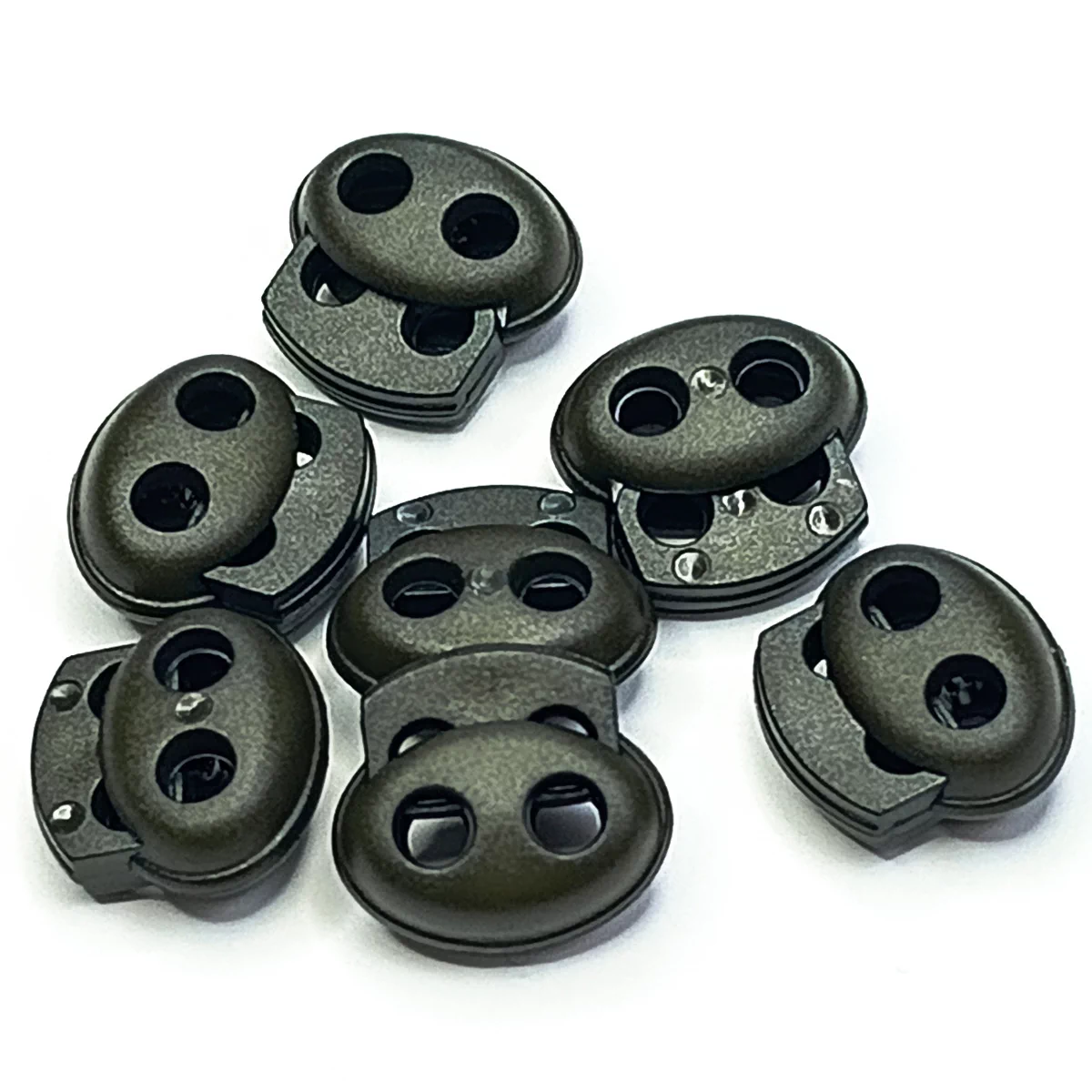 Фиксатор-ограничитель с двумя отверстиями, изготовленные из пластика, помогут надежно и красиво зафиксировать шнур/шляпную резинку на одежде, сумке, обуви.