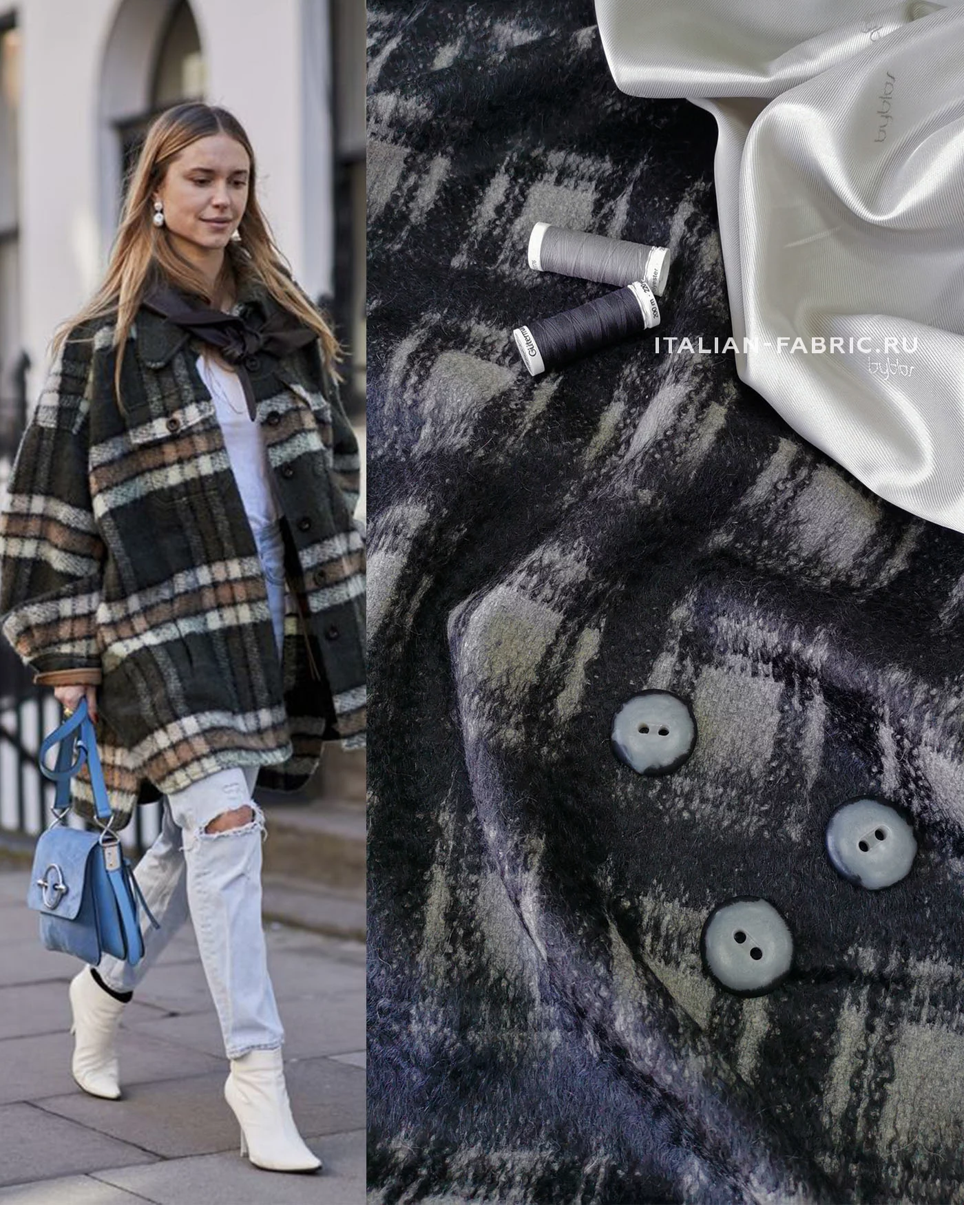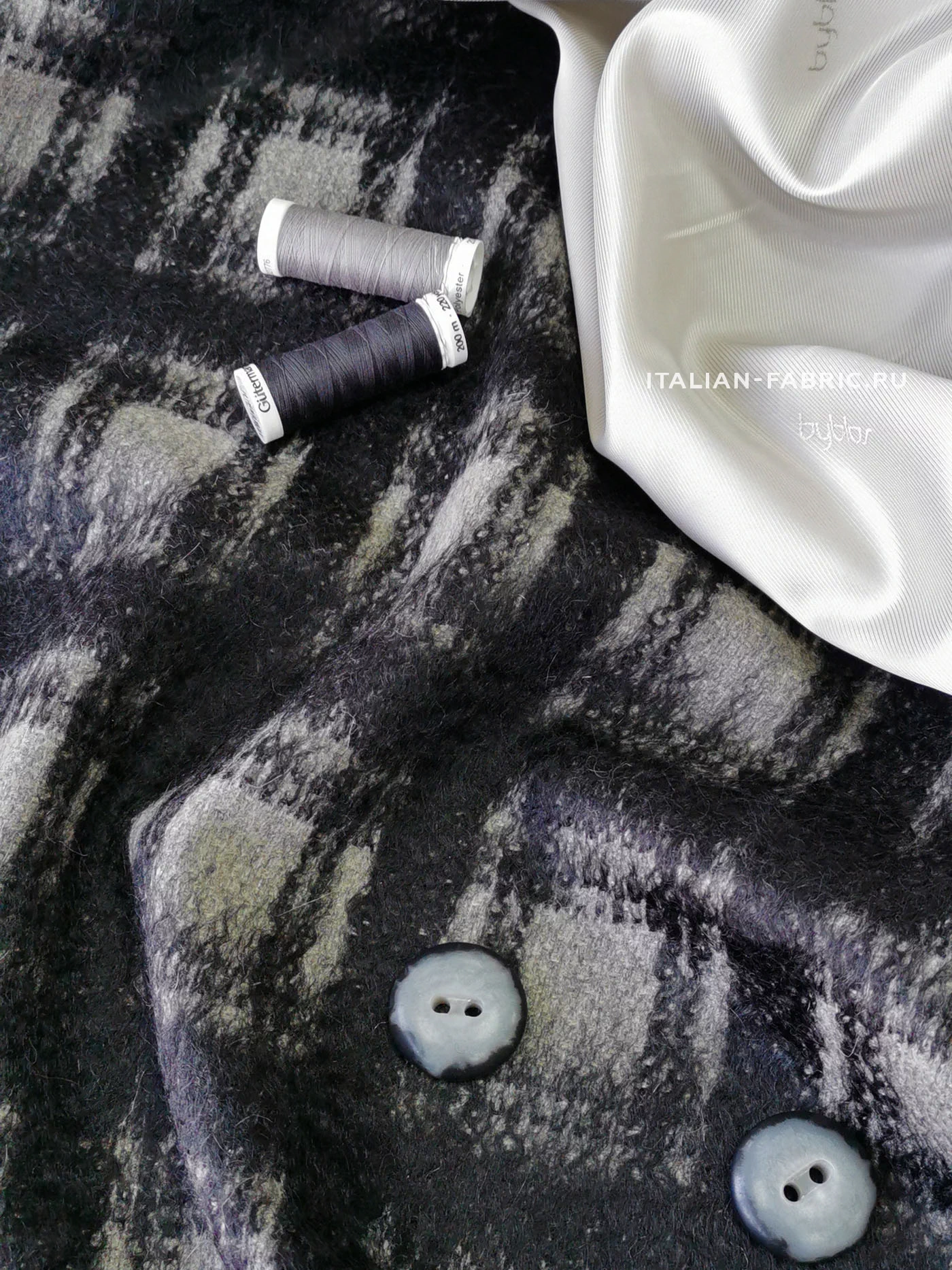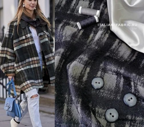 Для пошива пальто, а также очень актуальных в этом сезоне пальто-рубашек рекомендуем стильную пальтовую ткань с мохером. Материал с ворсом, в черно-серых цветах смотрится очень красиво. Легкая, но теплая ткань, приятная тактильно.