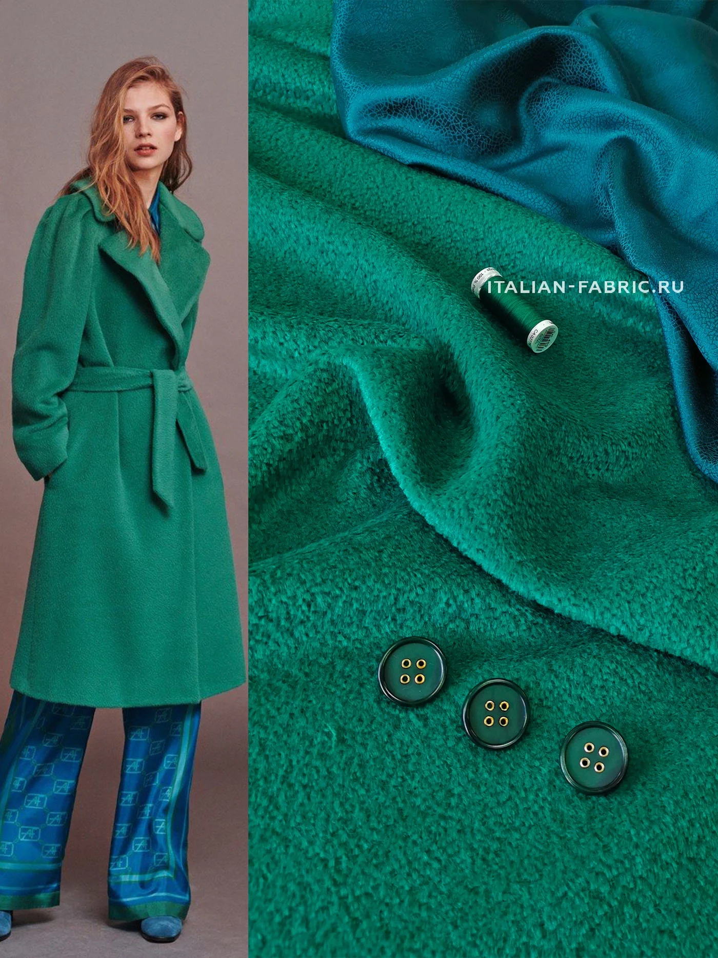 Итальянская пальтовая ткань самого высокого качества. Материал невероятно красиво играет на свету мягким изящным блеском и изумительно смотрится благодаря своей фактуре – короткому плотному ворсу. Полотно очень мягкое и приятное на ощупь, легкое, но теплое.