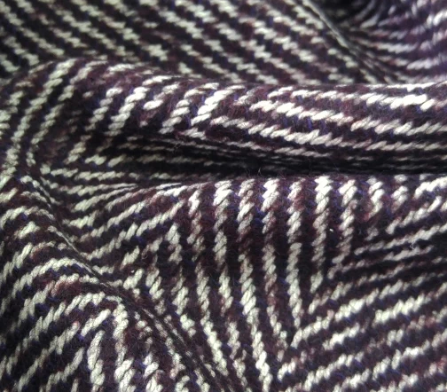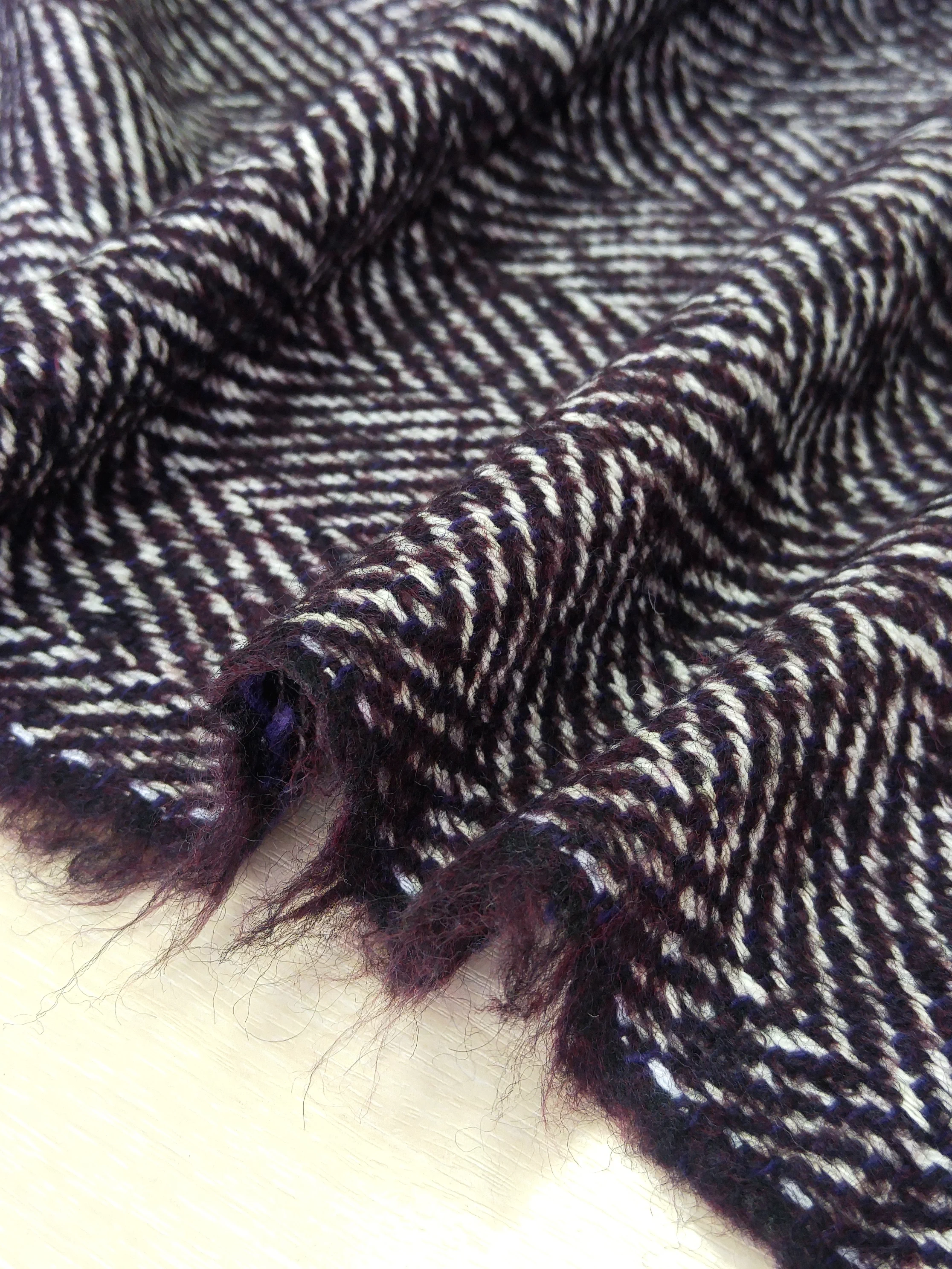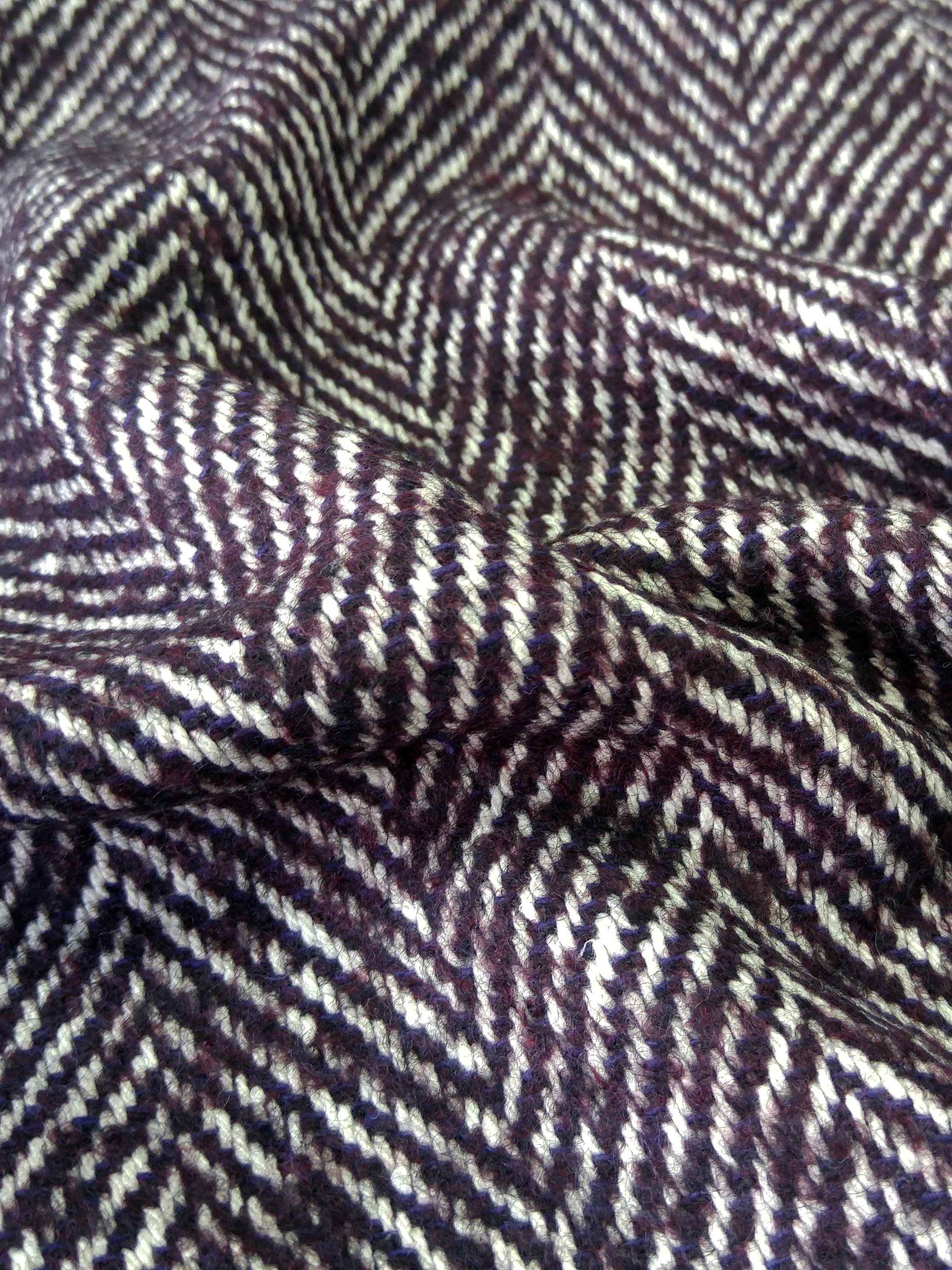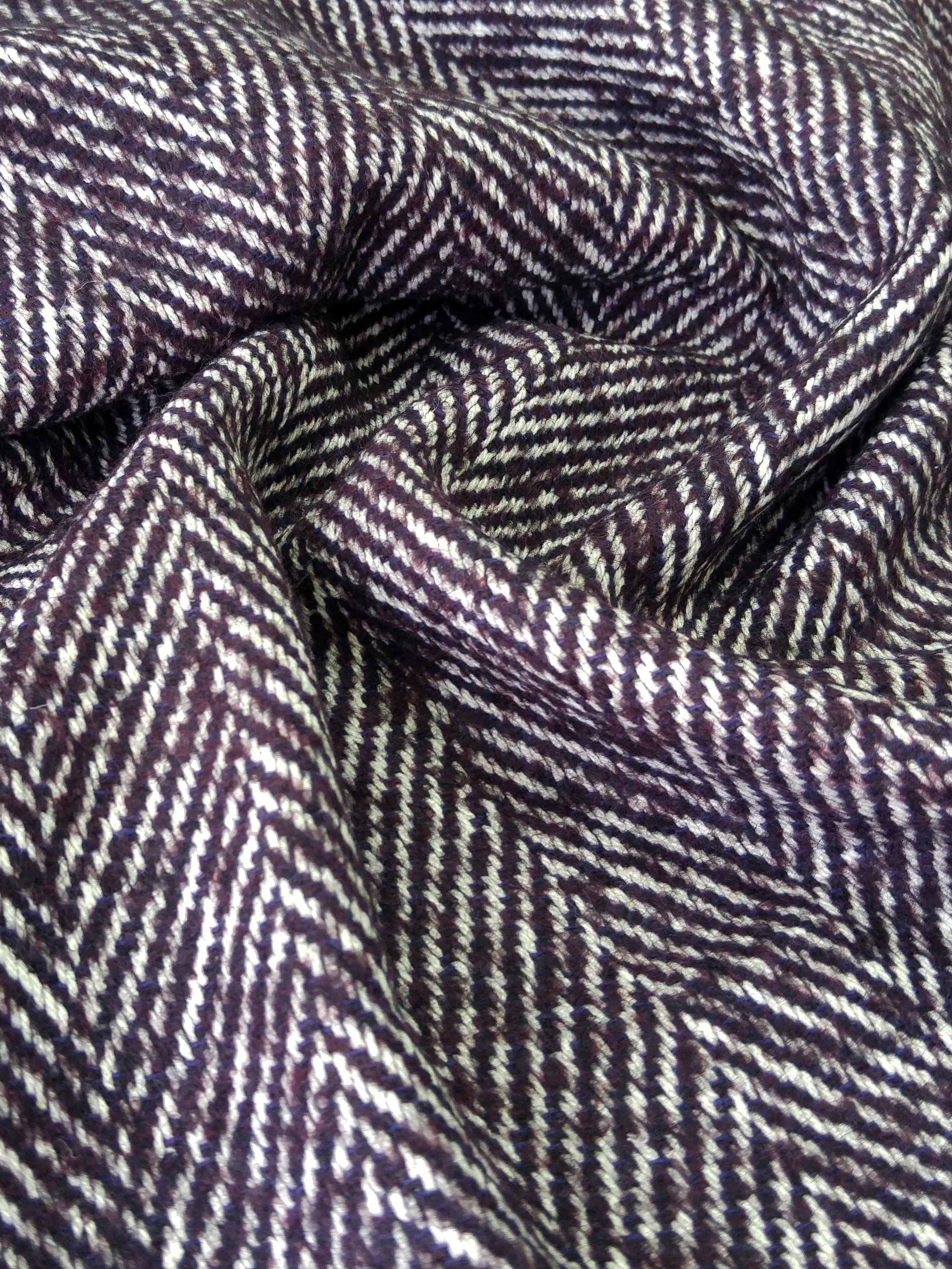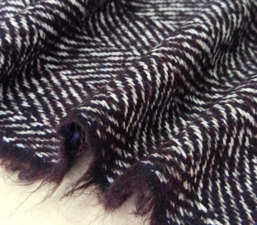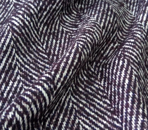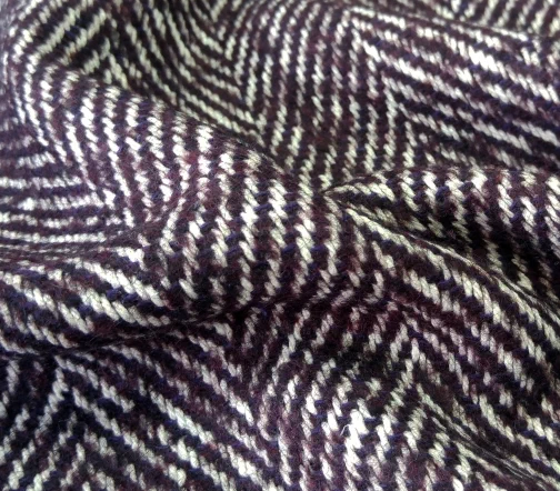 Прекрасного качества и красоты итальянская пальтовая ткань Alta Moda с узором «елочка» оригинального сливового цвета.