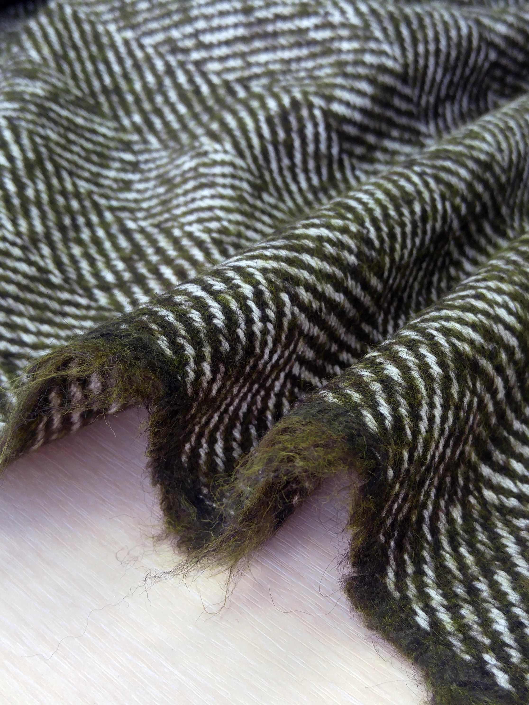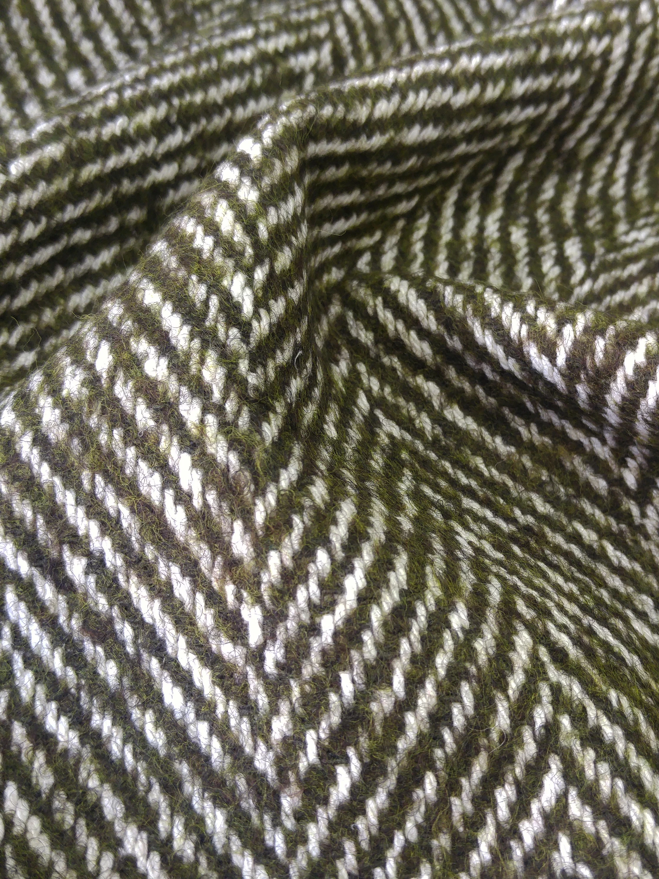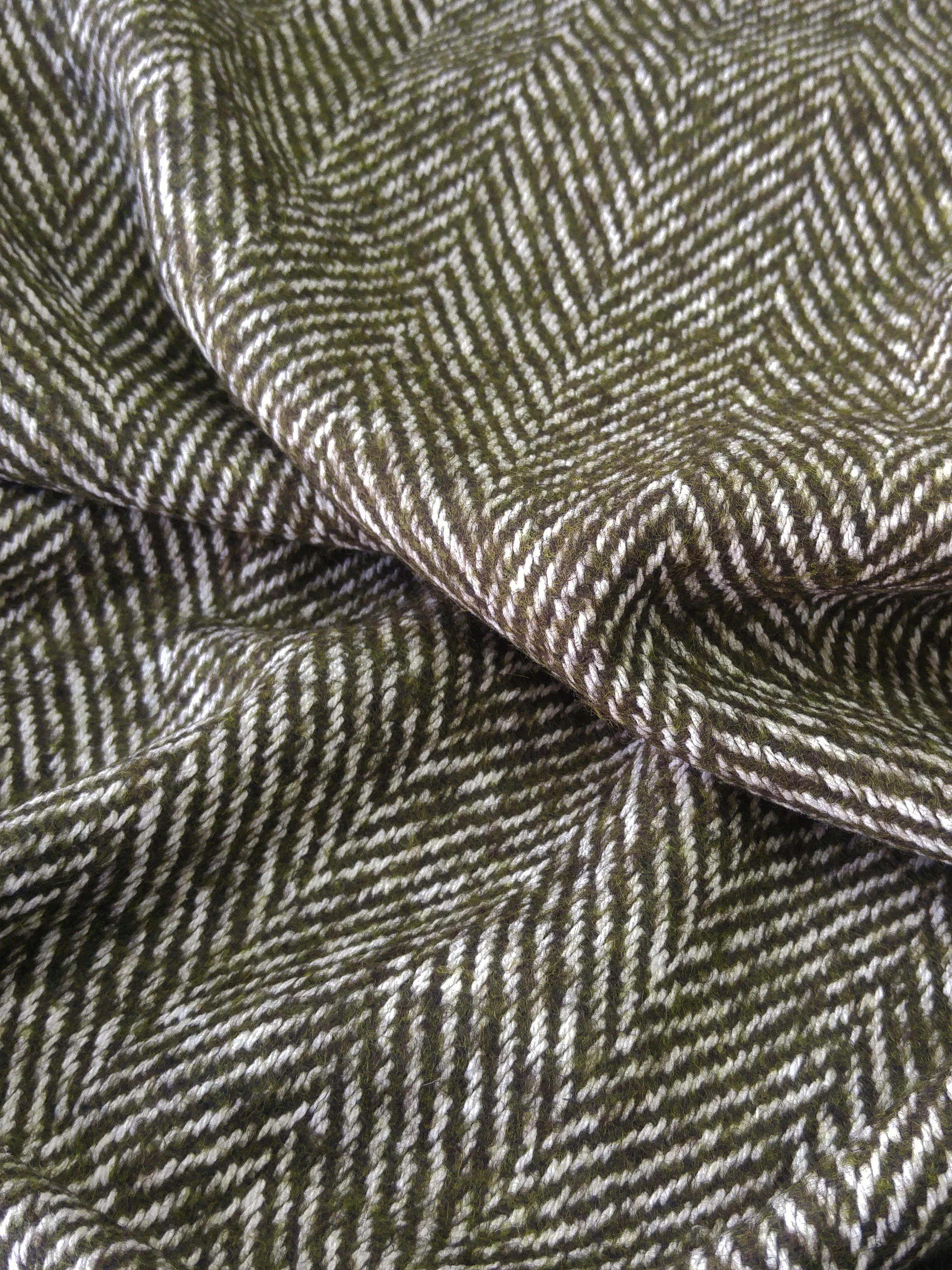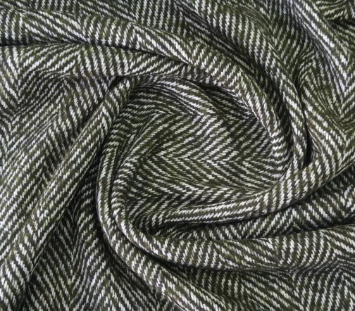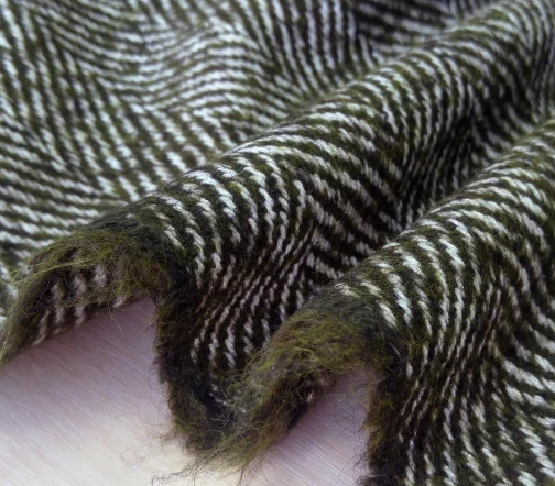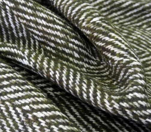 Прекрасного качества и красоты итальянская пальтовая ткань Alta Moda с узором «елочка» оригинального цвета хвои. Материал пластичный, мягкий и приятный на ощупь.