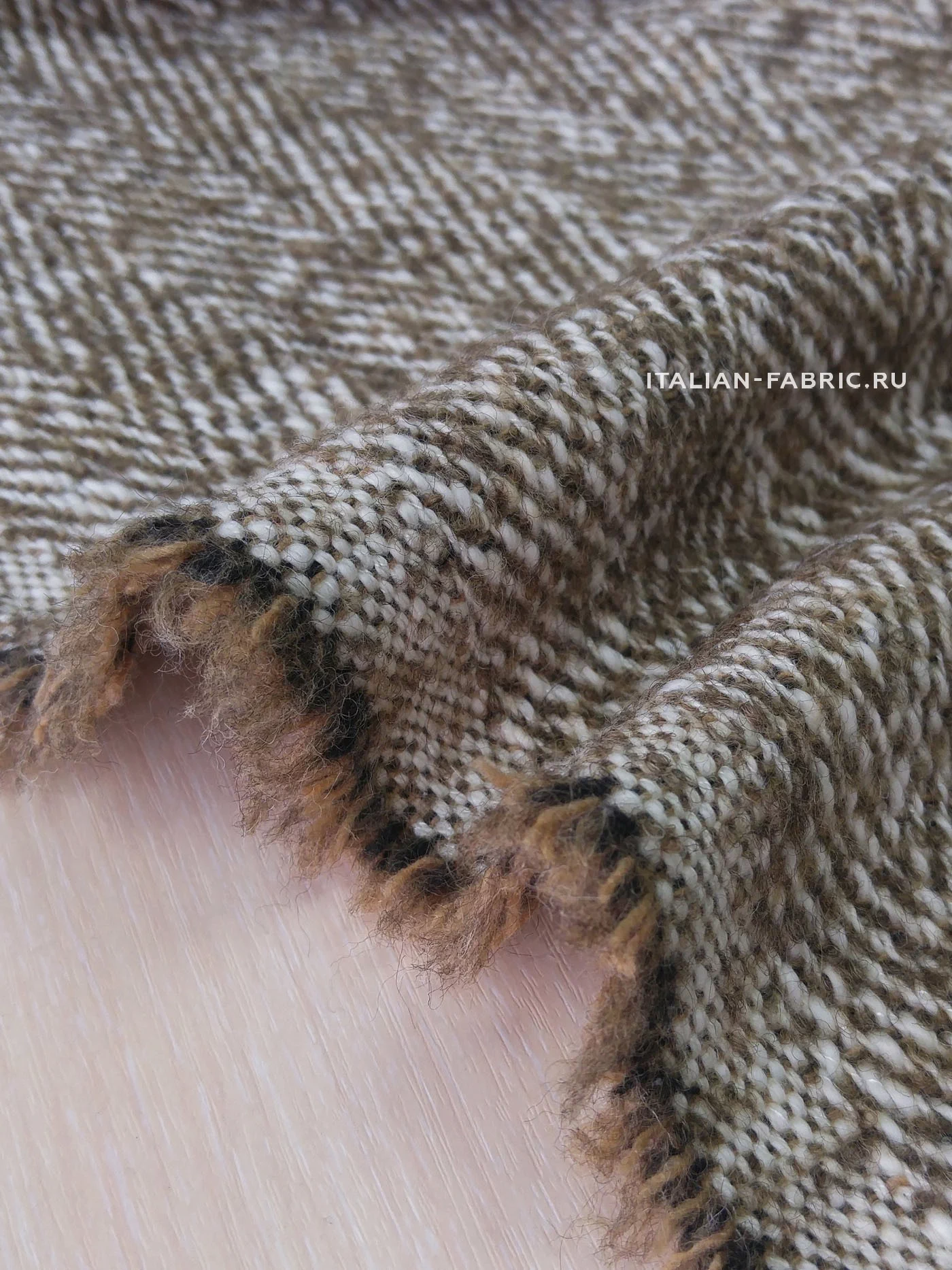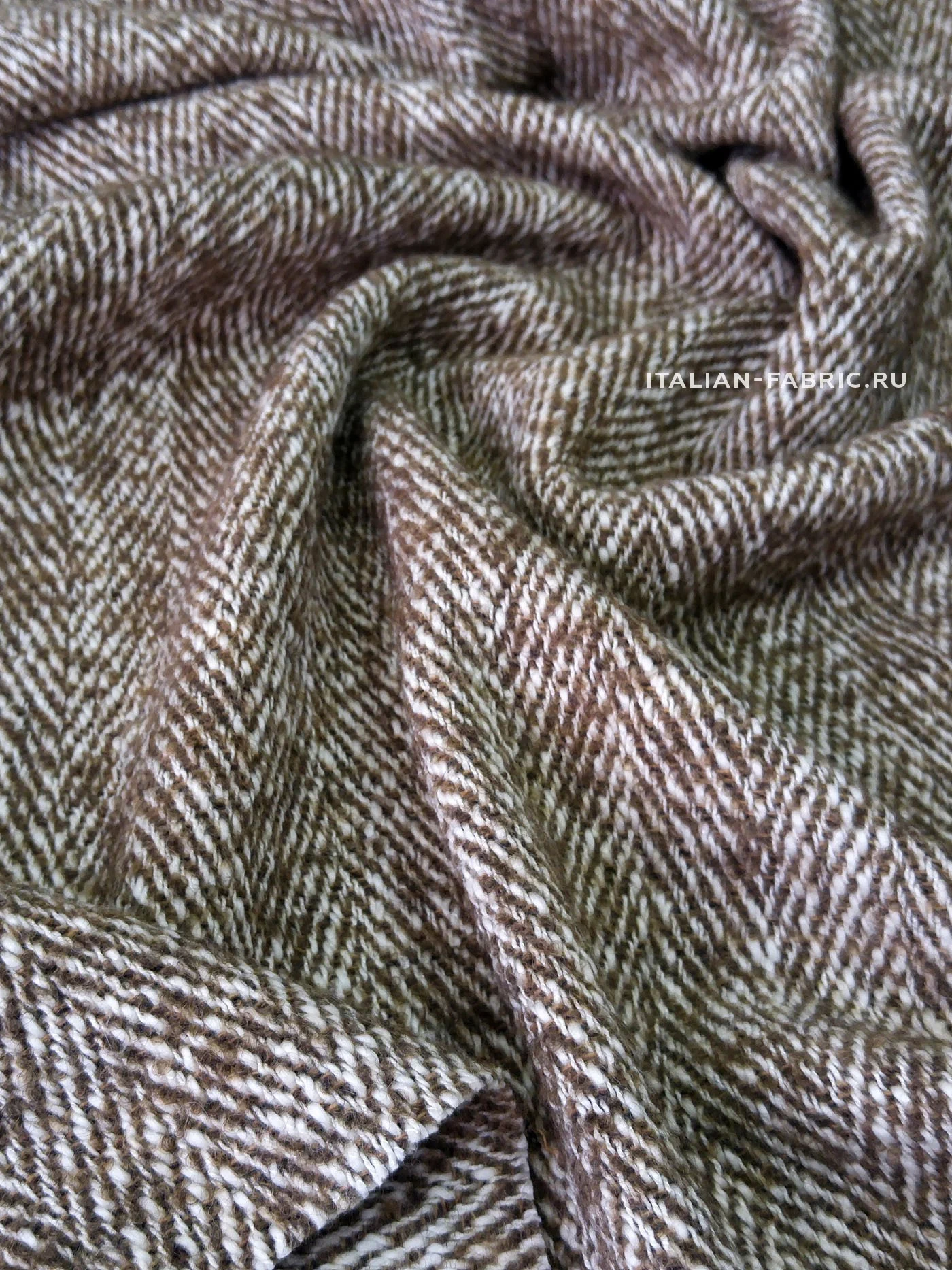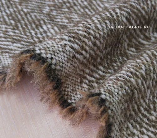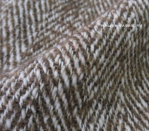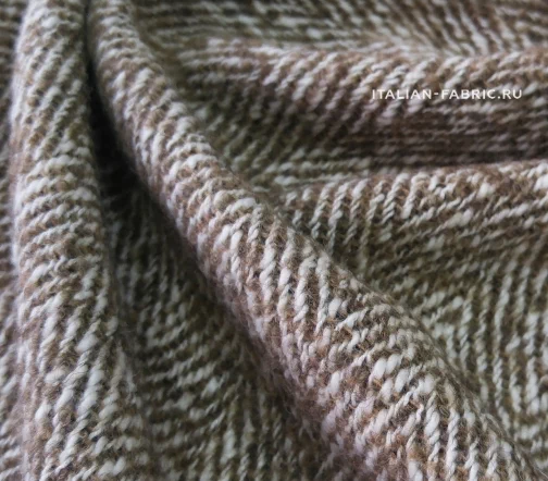 Изумительной красоты итальянская пальтовая ткань Alta Moda с узором «елочка» универсального бежевого цвета. Прекрасный смесовый состав на основе шерсти с добавлением мохера и альпаки.
