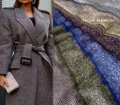 Материал пластичный, мягкий и приятный на ощупь, великолепно смотрится в готовых изделиях – пальто и полупальто.