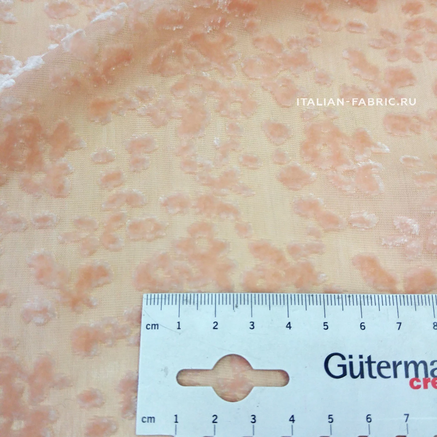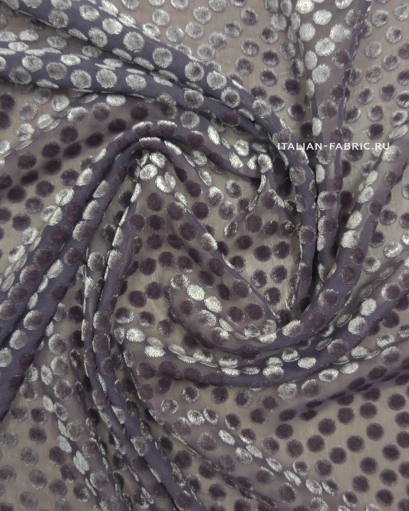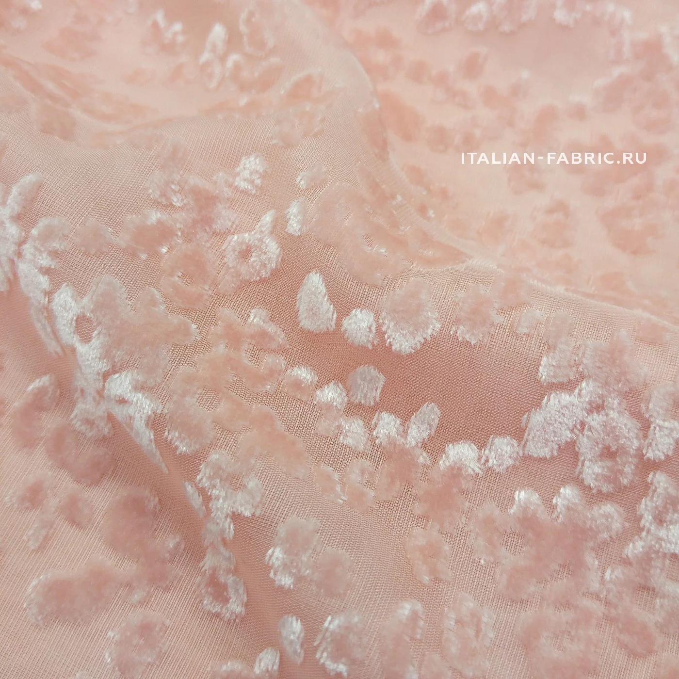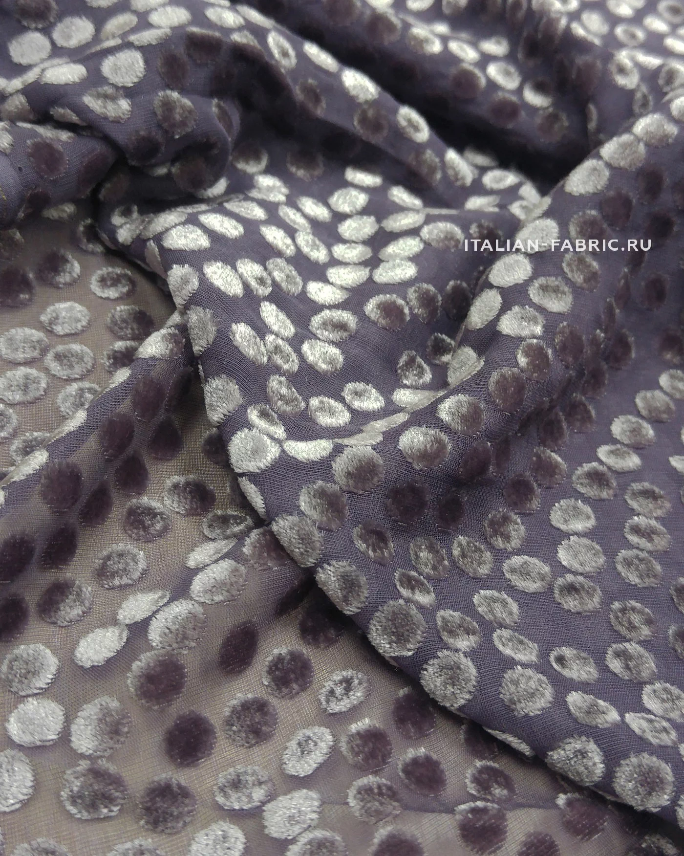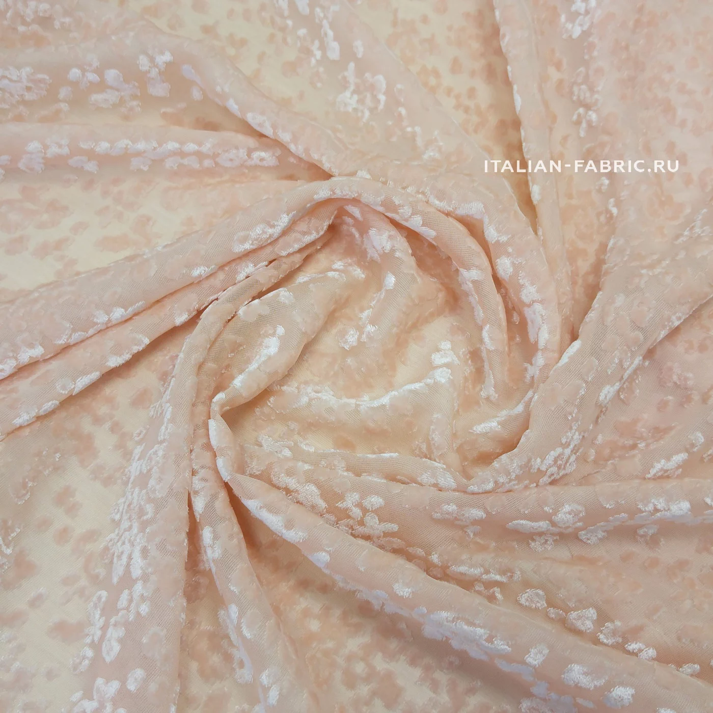 Эксклюзивная, очень элегантная итальянская ткань с глянцевым ворсовым узором на шелковой матовой прозрачной основе. Тонкая, но при этом объемная за счет рельефности рисунка, материя при драпировке ложится мягкими складками. Вся красота ткани раскрывается в динамике - мягко переливается и меняет оттенки во время движения. Шикарно смотрится в платьях, блузках, юбках и удлиненных накидках.