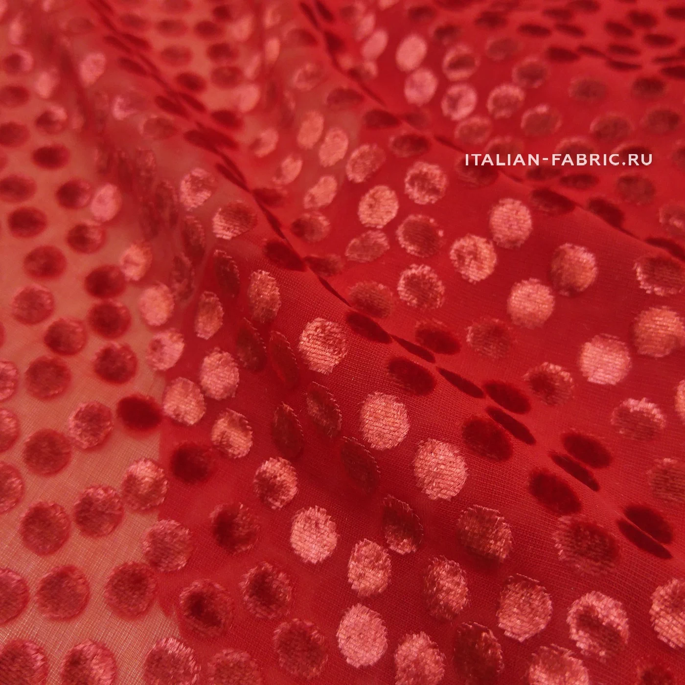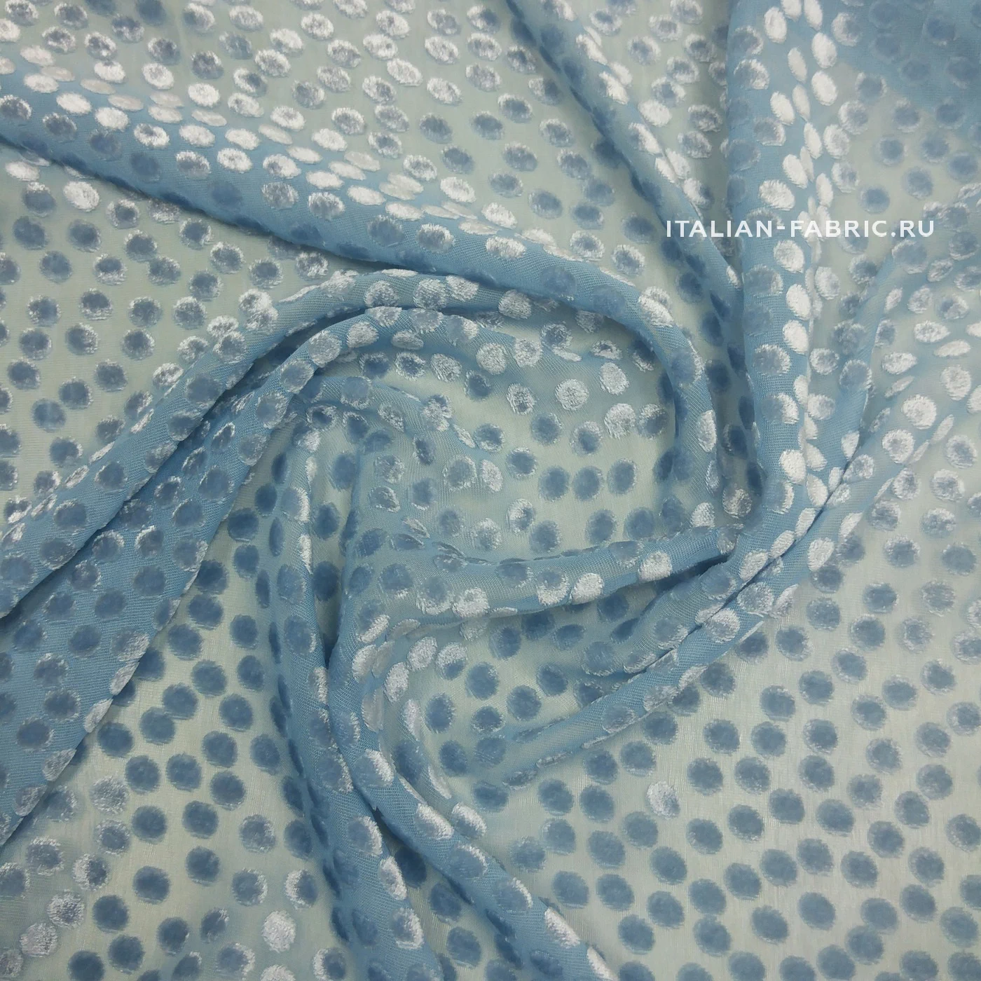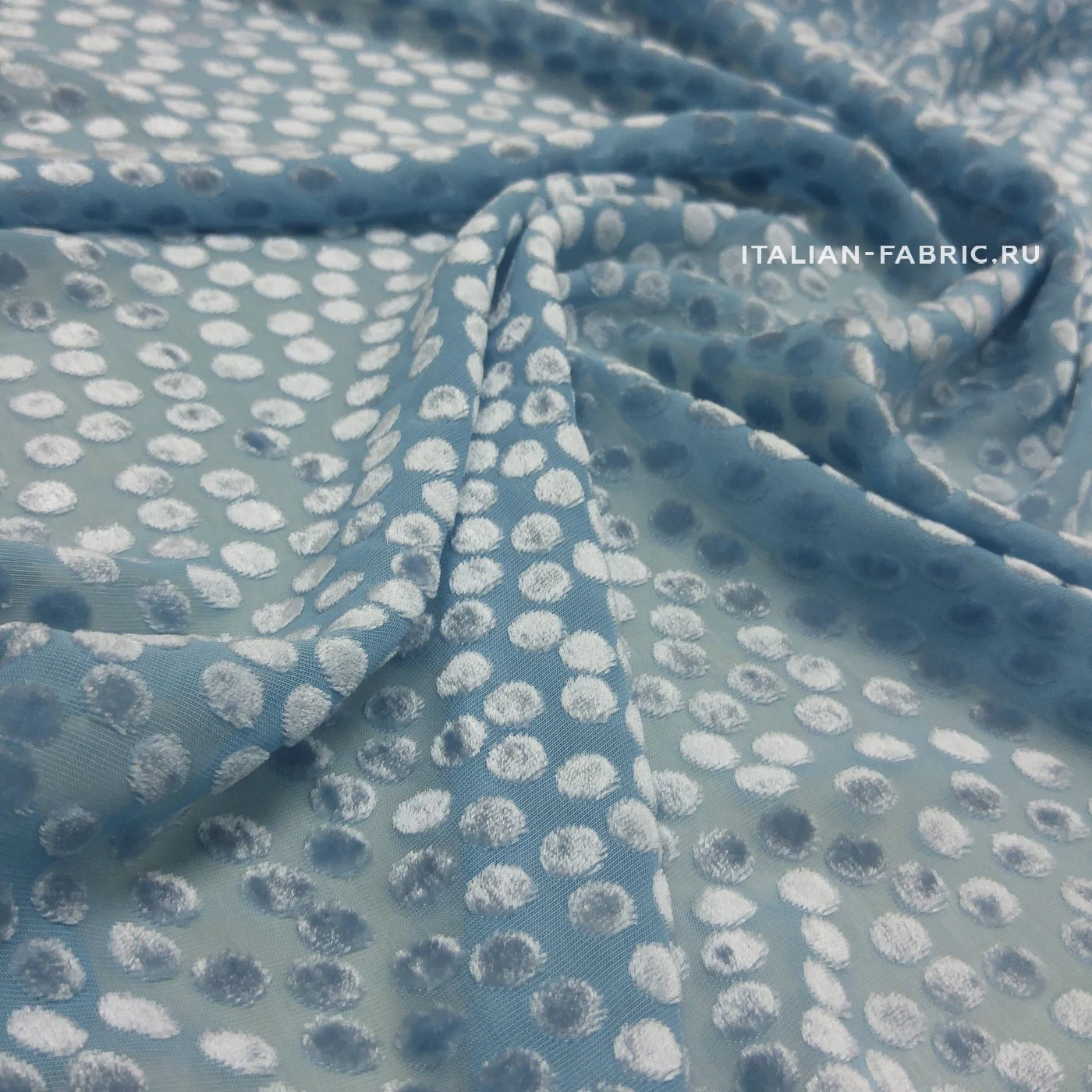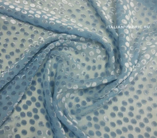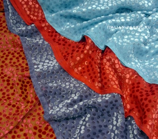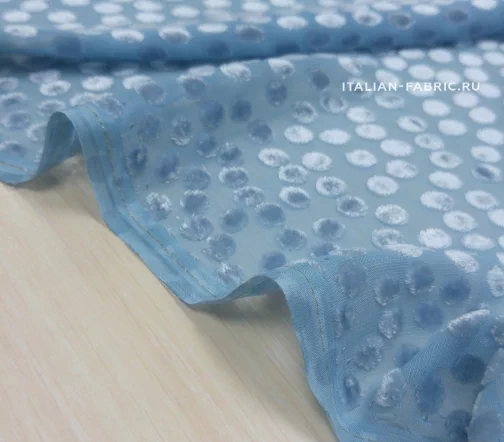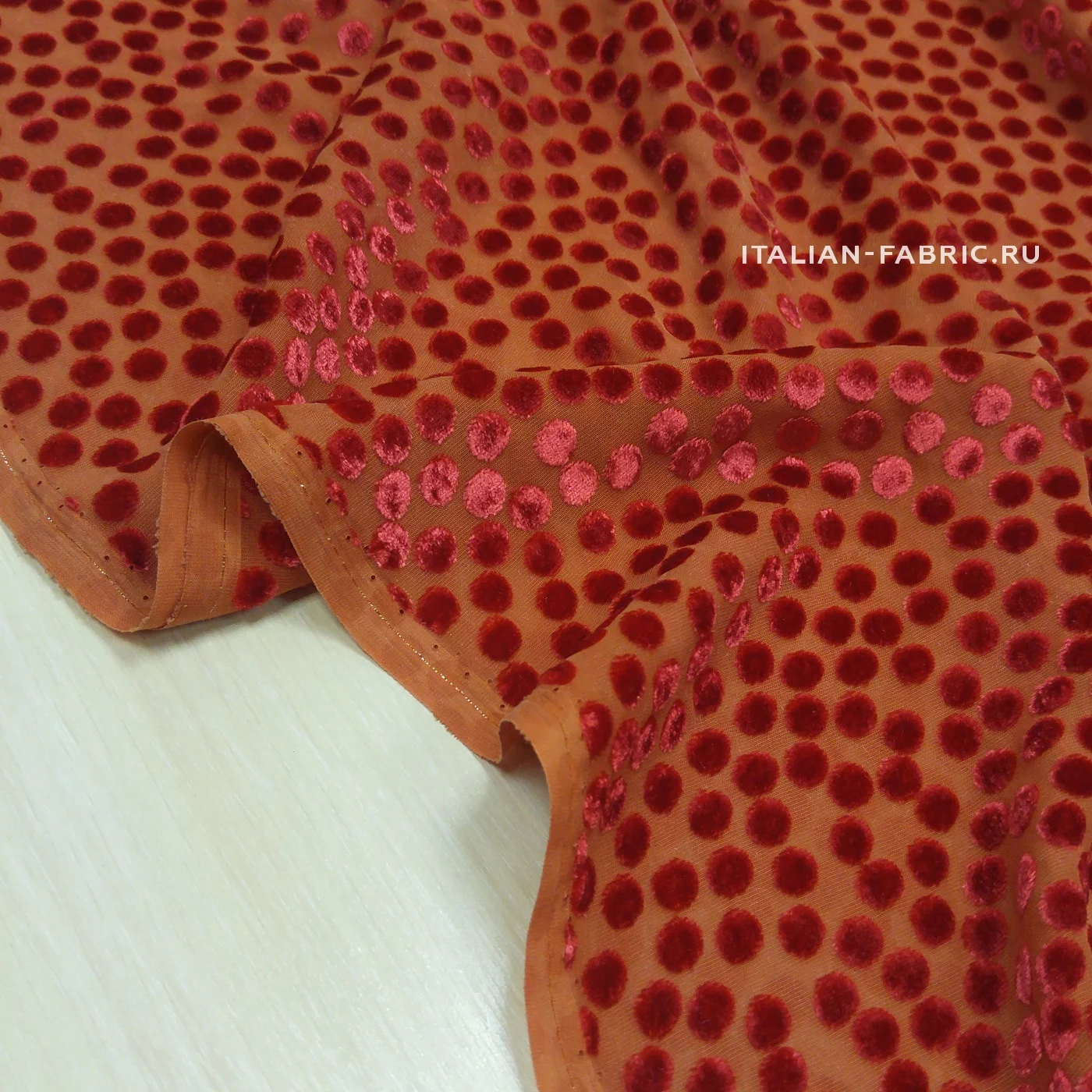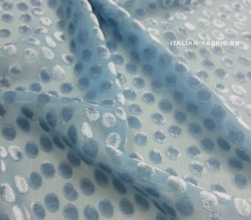 Эксклюзивная, очень элегантная итальянская ткань с глянцевым ворсовым узором на шелковой матовой прозрачной основе. Тонкая, но при этом объемная за счет рельефности рисунка, материя при драпировке ложится мягкими складками. Вся красота ткани раскрывается в динамике - мягко переливается и меняет оттенки во время движения. Шикарно смотрится в платьях, блузках, юбках и удлиненных накидках.