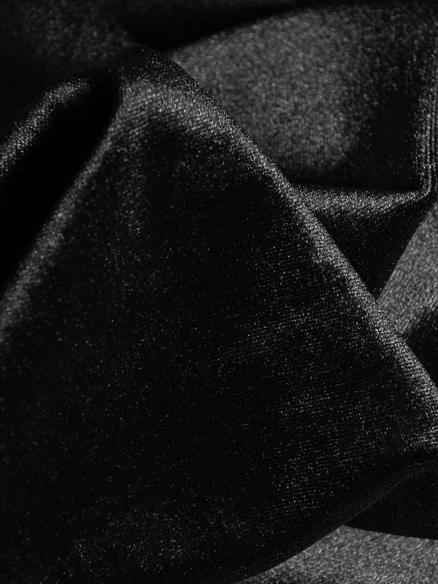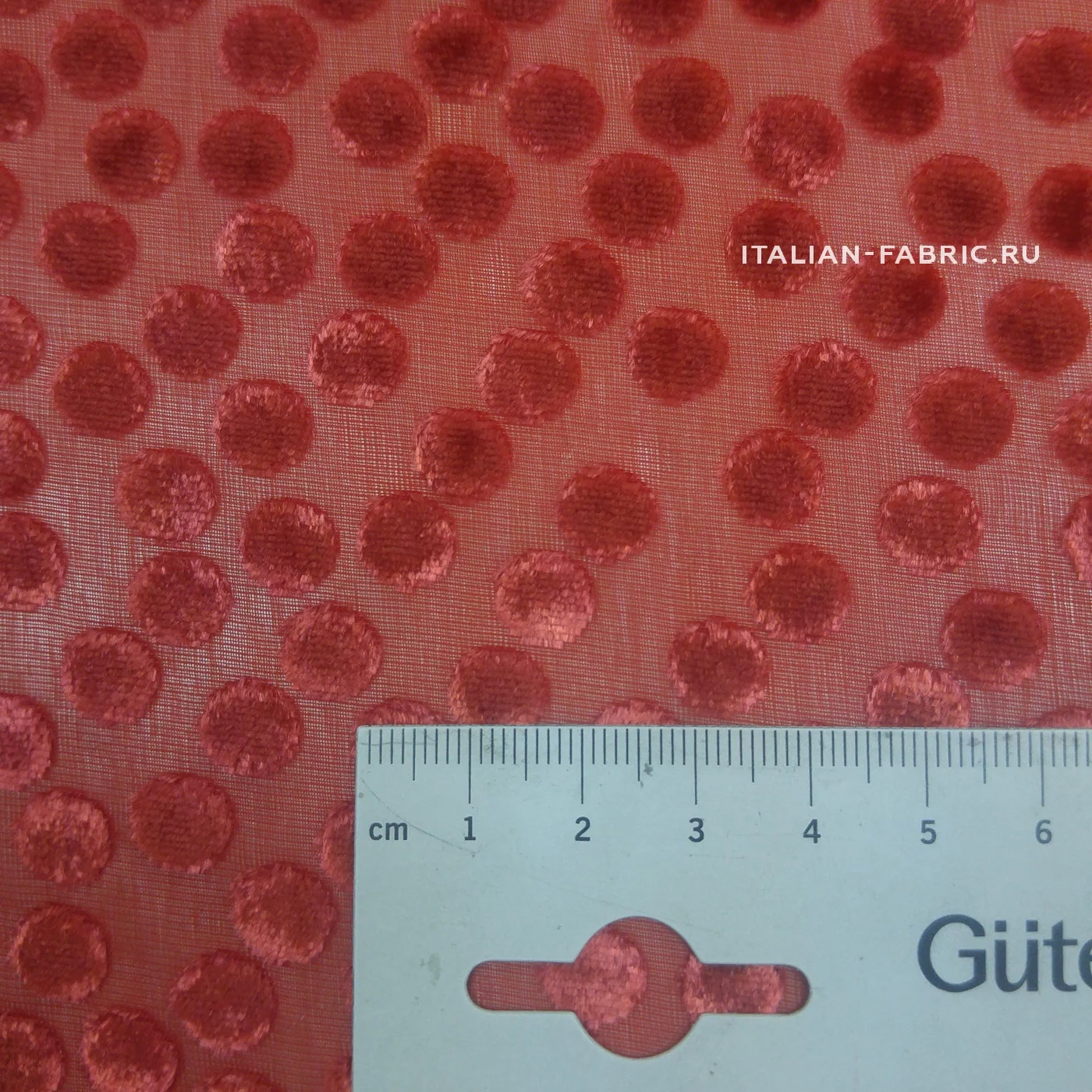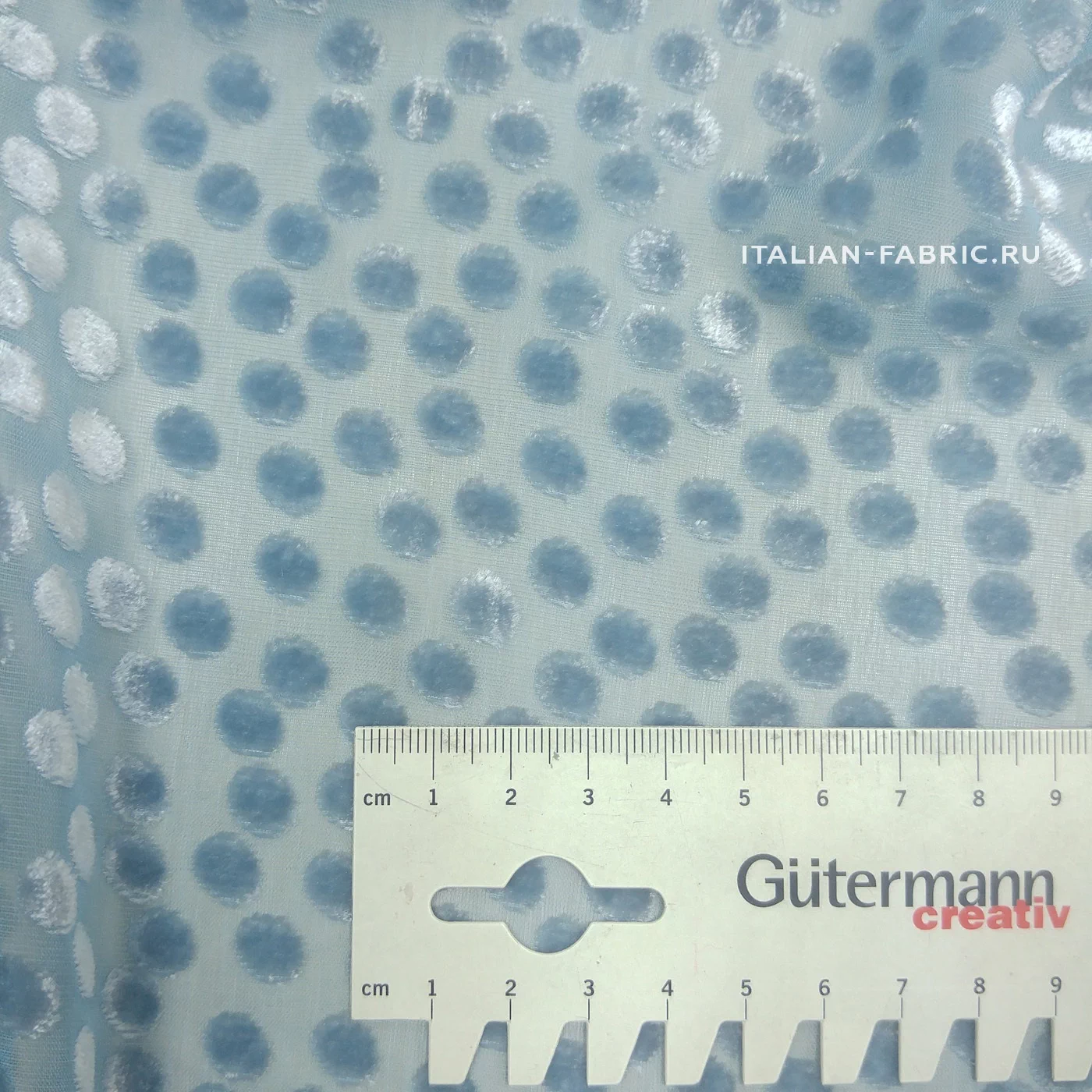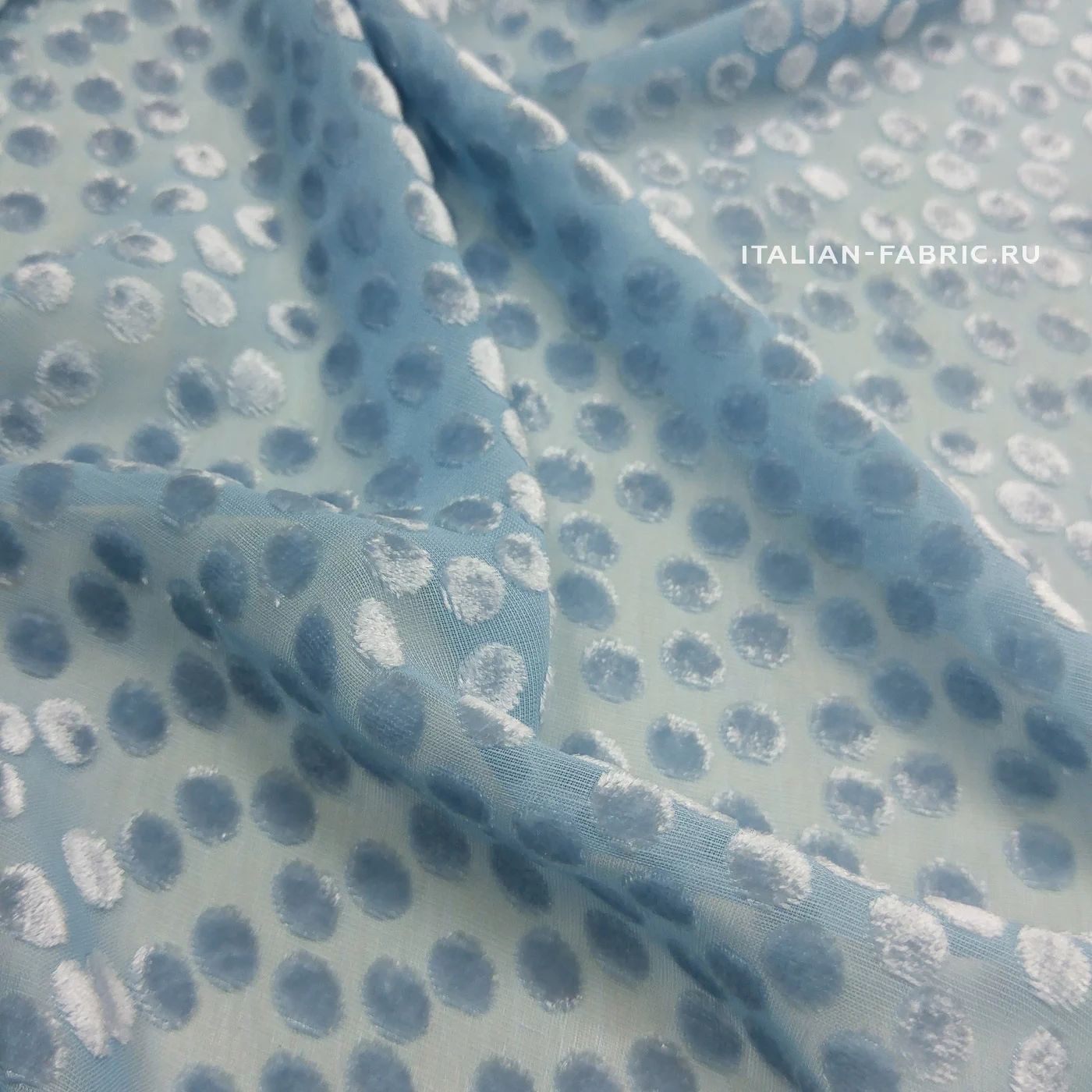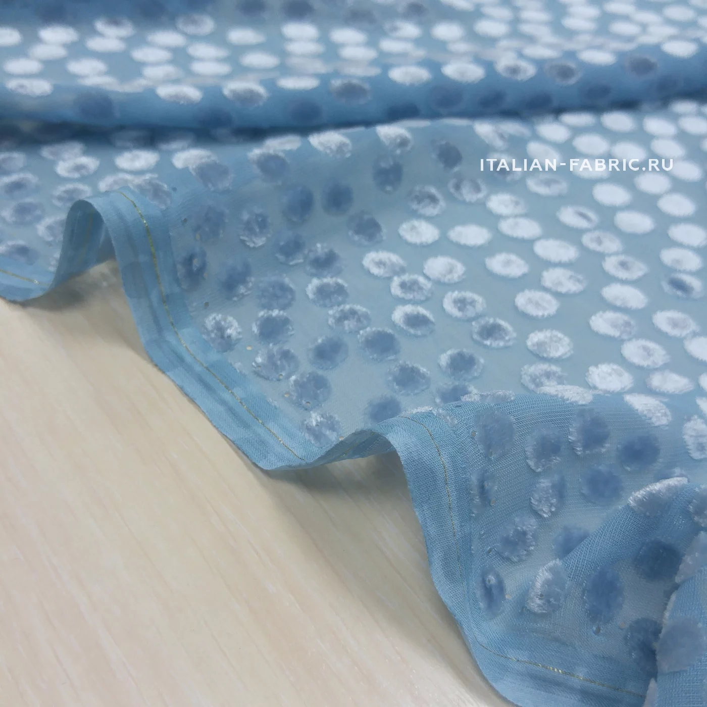 Эксклюзивная, очень элегантная итальянская ткань с глянцевым ворсовым узором на шелковой матовой прозрачной основе. Тонкая, но при этом объемная за счет рельефности рисунка, материя при драпировке ложится мягкими складками. Вся красота ткани раскрывается в динамике - мягко переливается и меняет оттенки во время движения. Шикарно смотрится в платьях, блузках, юбках и удлиненных накидках.