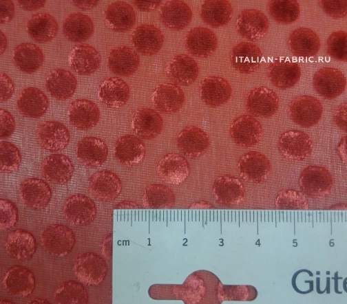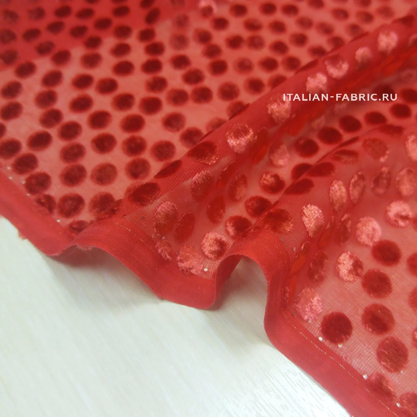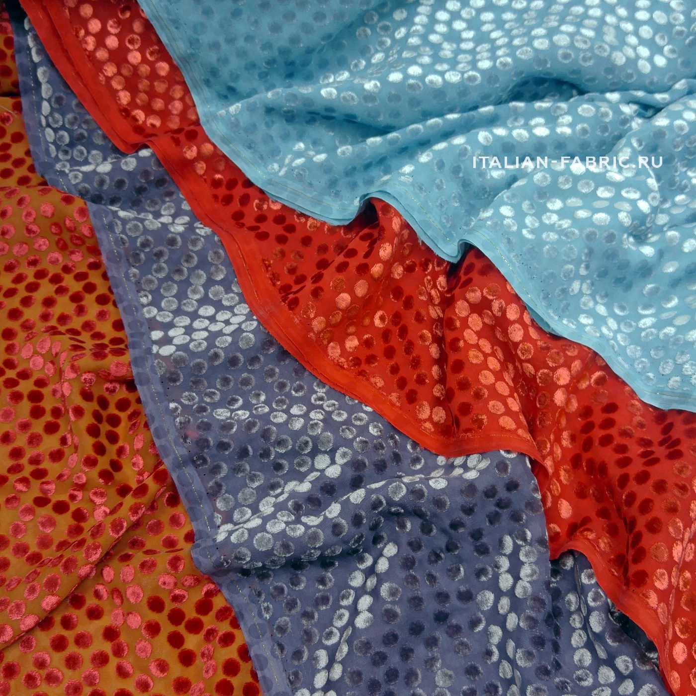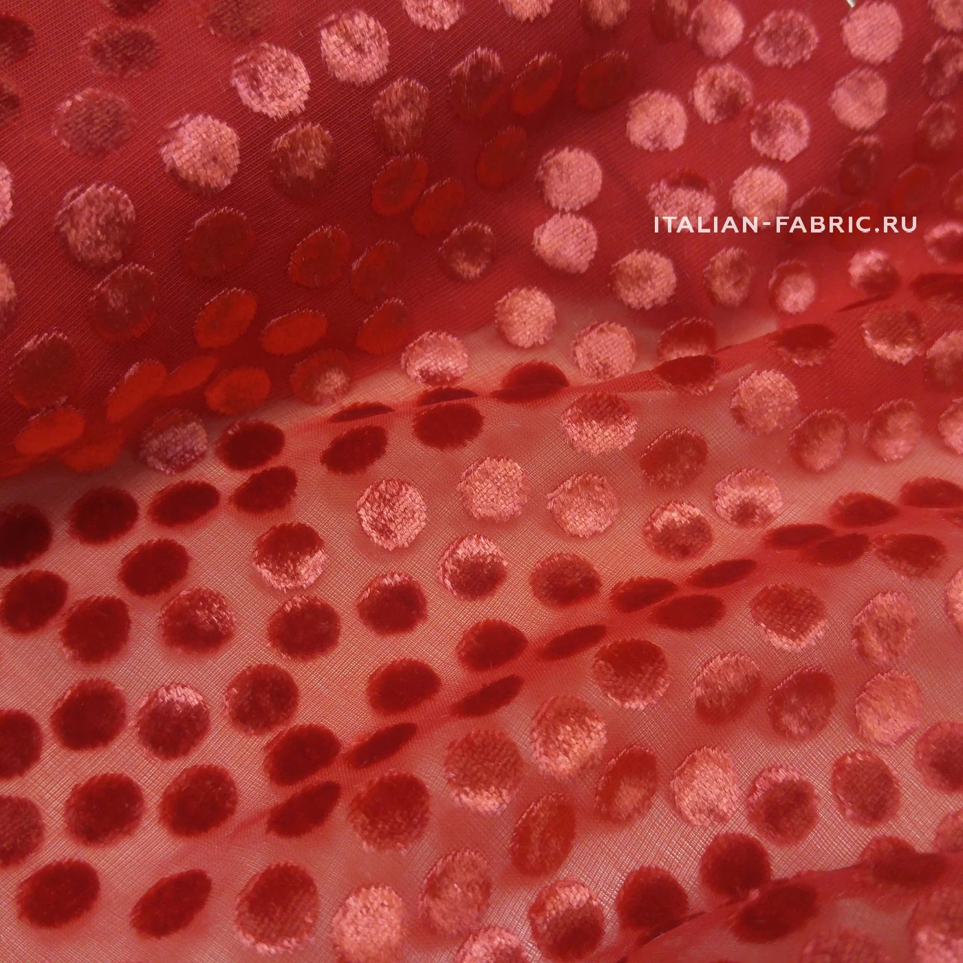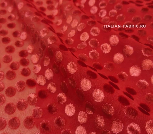 Эксклюзивная, очень элегантная итальянская ткань с глянцевым ворсовым узором на шелковой матовой прозрачной основе. Тонкая, но при этом объемная за счет рельефности рисунка, материя при драпировке ложится мягкими складками. Вся красота ткани раскрывается в динамике - мягко переливается и меняет оттенки во время движения. Шикарно смотрится в платьях, блузках, юбках и удлиненных накидках.