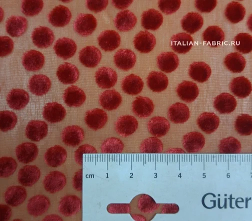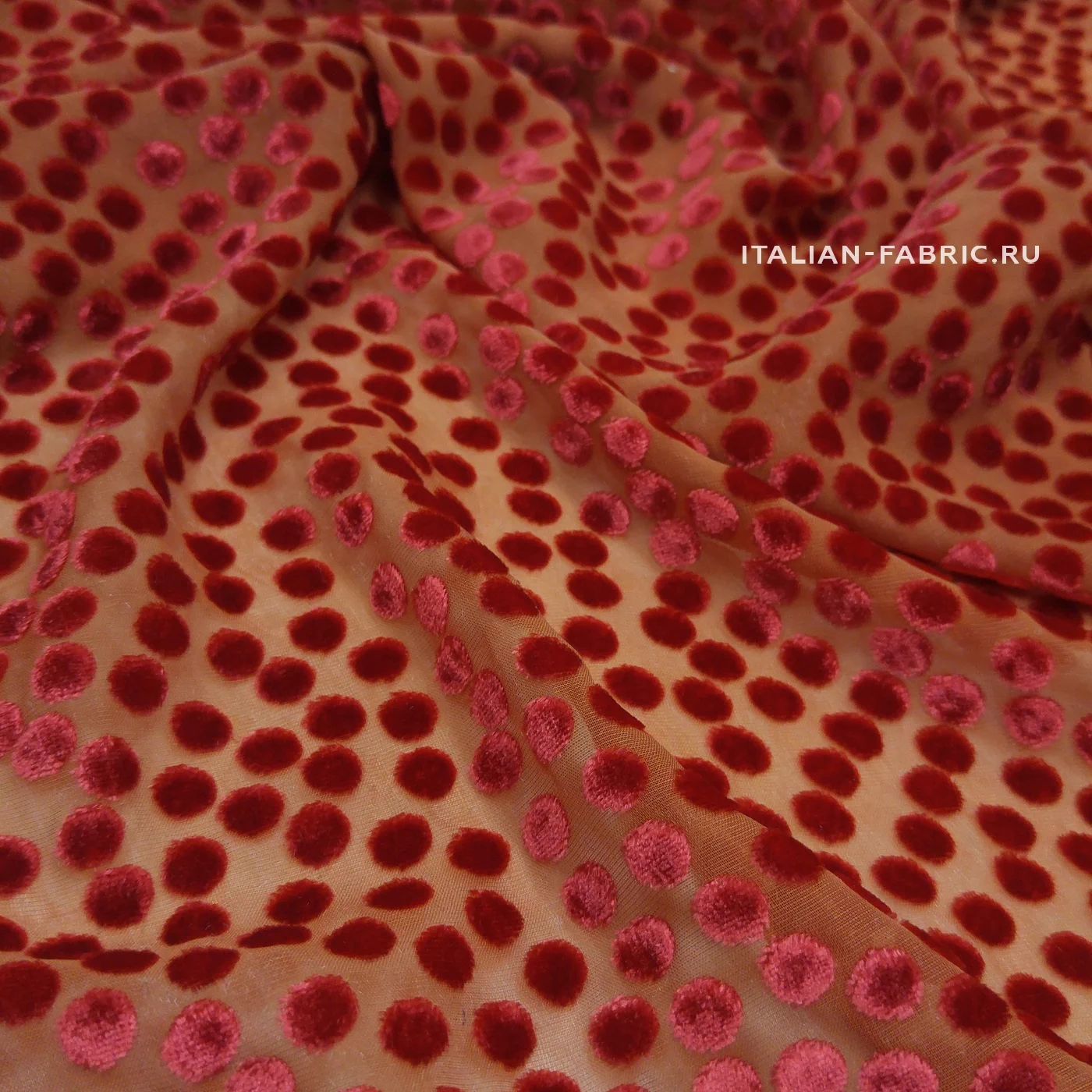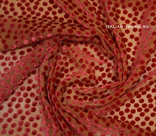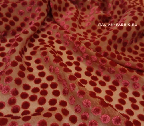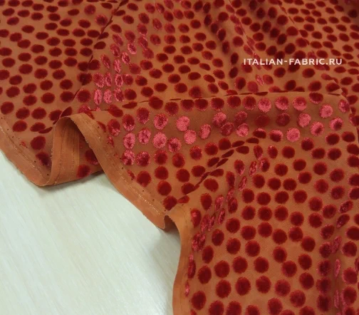 Эксклюзивная, очень элегантная итальянская ткань с глянцевым ворсовым узором на шелковой матовой прозрачной основе. Тонкая, но при этом объемная за счет рельефности рисунка, материя при драпировке ложится мягкими складками. Вся красота ткани раскрывается в динамике - мягко переливается и меняет оттенки во время движения. Шикарно смотрится в платьях, блузках, юбках и удлиненных накидках.