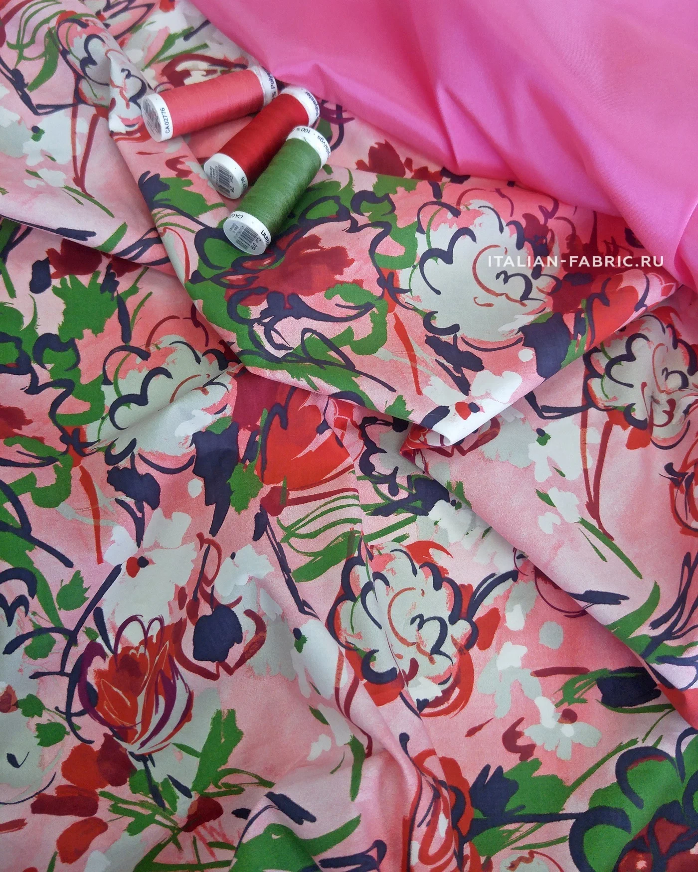 Красивый яркий принт с абстрактными цветами. Ткань легкая, ветронепроницаемая, хорошо драпируется, не шуршит, лицевая сторона матовая. Для пошива ветровок, курток, плащей.