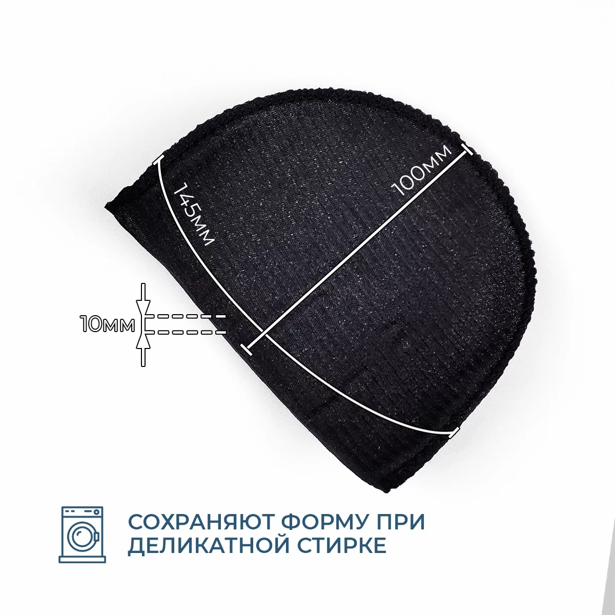 Толщина 10мм, длина (до плеча) 100мм, окат 150мм. Используют при пошиве блузок и платьев из легких тканей с втачной формой рукава. Плечевые накладки изготавливаются из поролона.