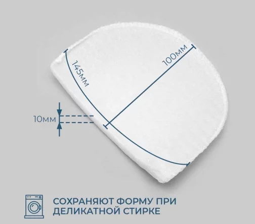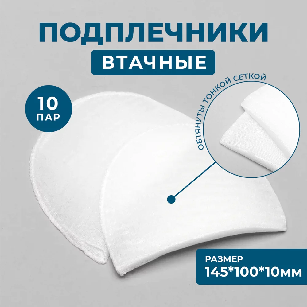 Толщина 10мм, длина (до плеча) 100мм, окат 150мм. Используют при пошиве блузок и платьев из легких тканей с втачной формой рукава. Плечевые накладки изготавливаются из поролоновых заготовок и обшиваются трикотажным полотном различной плотности.